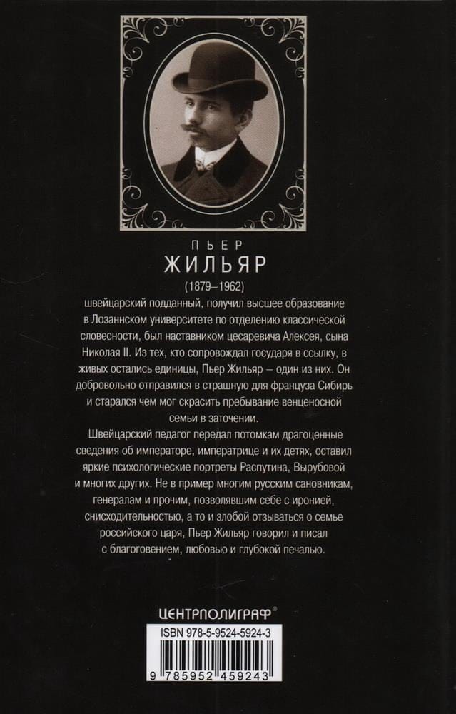 Пьер Жильяр был наставником цесаревича Алексея, сына Николая II. Бесстрашный француз добровольно отправился с опальной царской семьей в Сибирь и старался чем мог скрасить пребывание в заточении царя, царицы и их детей. Жильяр передал потомкам драгоценные сведения о последних днях императорской семьи, оставил яркие психологические портреты Распутина, Вырубовой и многих других известных личностей этой трагической эпохи в жизни России.