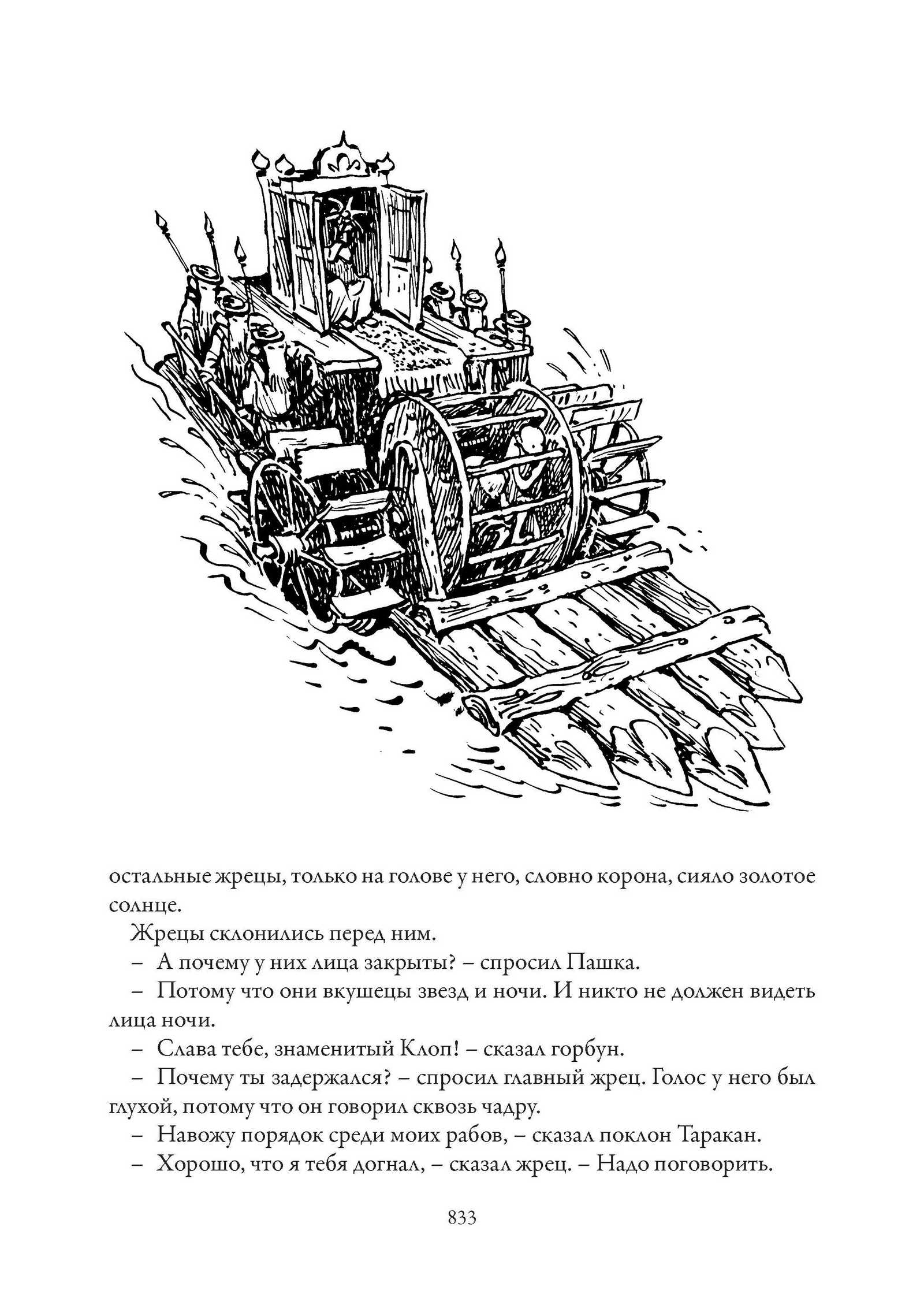 Истоки современной фантастики уходят своими корнями не только в Средневековье, но и глубже — в античность. Как самостоятельный жанр фантастика сложилась лишь в XIX веке в основном благодаря Жюлю Верну и Герберту Уэллсу. Позже ответвление фантастики появилось на плодоносном древе детской литературы. Одним из первопроходцев на этом новом пути стал наш соотечественник — востоковед Игорь Всеволодович Можейко. Читателям он более известен благодаря псевдониму — Кир Булычёв. В пятидесятых годах XX века Станислав Лем отправил своего героя Ийона Тихого в космос, где с этим новоявленным Мюнхгаузеном произошло множество приключений. Примерно через десять лет придуманная Можейко героиня — девочка из будущего Алиса Селезнева — также начала путешествовать по космическим далям. Такой ход оказался удачным и плодотворным. В результате появилась обширная «Алисиана». Данное издание включает повести и рассказы об Алисе, написанные Можейко с 1984 по 1987 год. Читателей ждут встречи с чудовищами, космическими пиратами, воинственными лилипутами и таинственными жителями подводного мира. В отличие от Жюля Верна Можейко не описывает технику будущего и не делает футуристических прогнозов как Уэллс. Его повести об Алисе — это добротная детская литература, и в этом секрет ее успеха. Рисунки в этой второй книге о приключениях Алисы в серии БМЛ выполнены Евгением Тихоновичем Мигуновым. В 1965 году с его иллюстрациями вышла повесть Стругацких «Понедельник начинается в субботу». По манере и технике они очень похожи на его рисунки к повестям Булычева. Главной их отличительной чертой является динамизм. Мигунов почти всегда изображает героев Булычева в движении, и это не случайно, ведь Евгений Тихонович много лет проработал в анимационном кино. В 1939 году он поступил на художественный факультет Всероссийского государственного института кинематографии, где начал заниматься в мастерской знаменитого Иванова-Вано. Окончив ВГИК, Мигунов стал не обычным художником-мультипликатором, а сделался настоящим новатором рисованного и кукольного кино. Его творческие наработки сыграли важную роль в становлении современной школы русской мультипликации. Мигунов придумывал новые приемы, патентовал изобретения, помогавшие «оживлять» кукол, предлагал новые режиссерские приемы. С 1961 года Евгений Тихонович начал сотрудничать с журналами «Мурзилка», «Веселые картинки», «Пионер», «Крокодил», делая для них многочисленные иллюстрации. Рука мастера в них узнается с первого взгляда.