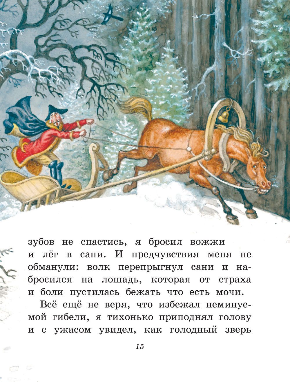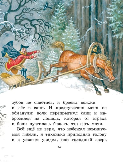 Прочитать эту книжку будет легко каждому! Специальный крупный шрифт оптимально подходит для удобного чтения. За чтением увлекательных рассказов остроумного выдумщика барона Мюнхгаузена и разглядыванием великолепных иллюстраций Игоря Егунов соберётся вся семья: и старшее поколение, и те, кто только учится читать. Мюнхгаузен расскажет читателю, как он пролетел на пушечном ядре, с одного раза подстрелил семь куропаток, выбрался из брюха огромной рыбы и даже побывал на Луне. А верить ли в эти фантастические приключения - решать читателю!