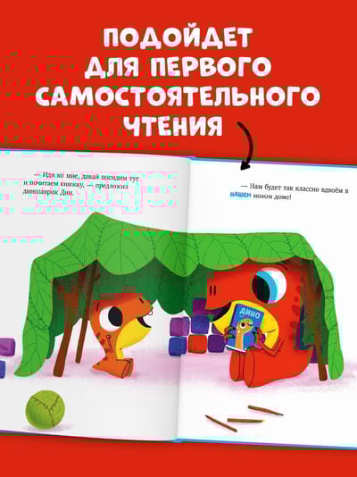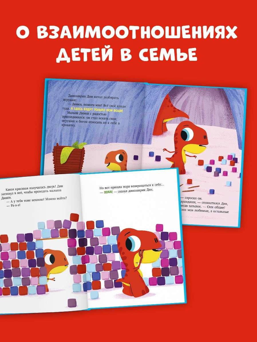 В книжке-картинке «Динозаврик Дин не хочет делиться!»‎ много смешных диалогов и ярких картинок. Герои здесь очень похожи на маленьких читателей и обязательно помогут понять, как правильно договориться, как подружиться, как играть вместе. Читая эту книгу, ребенок станет лучше понимать свои чувства и чувства своих сверстников. Читайте яркую книжку, рассматривайте иллюстрации и обсуждайте с детьми важные темы и поступки героев-динозавриков.
