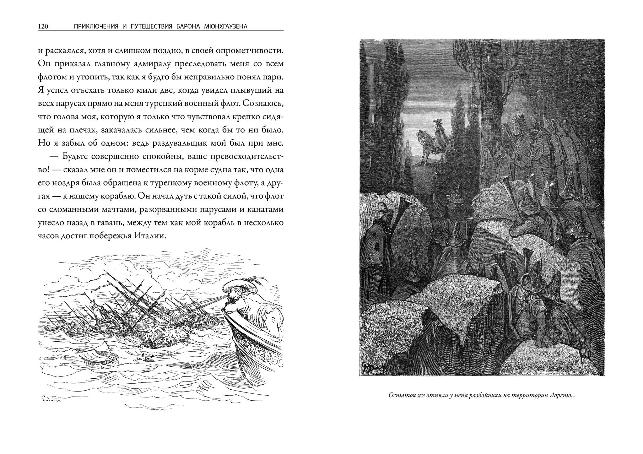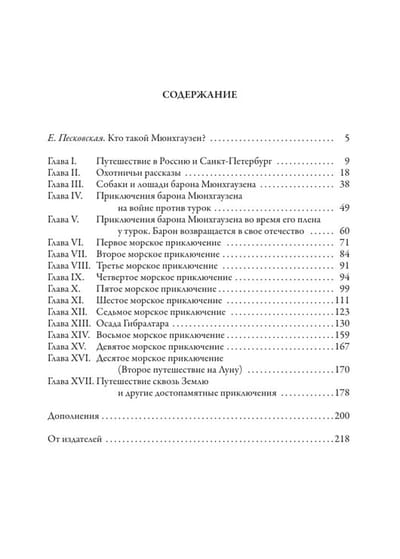 Удивительные приключения неутомимого путешественника, ловкача и хитреца барона Мюнхгаузена даны в дополненном переводе Екатерины Ивановны Песковской, наиболее точном и близком к оригиналу немецкого издания 1786 г. Книга оформлена классическими иллюстрациями французского гравера и живописца Гюстава Доре, выполненными к хрестоматийному французскому изданию Шарля Фюрна.