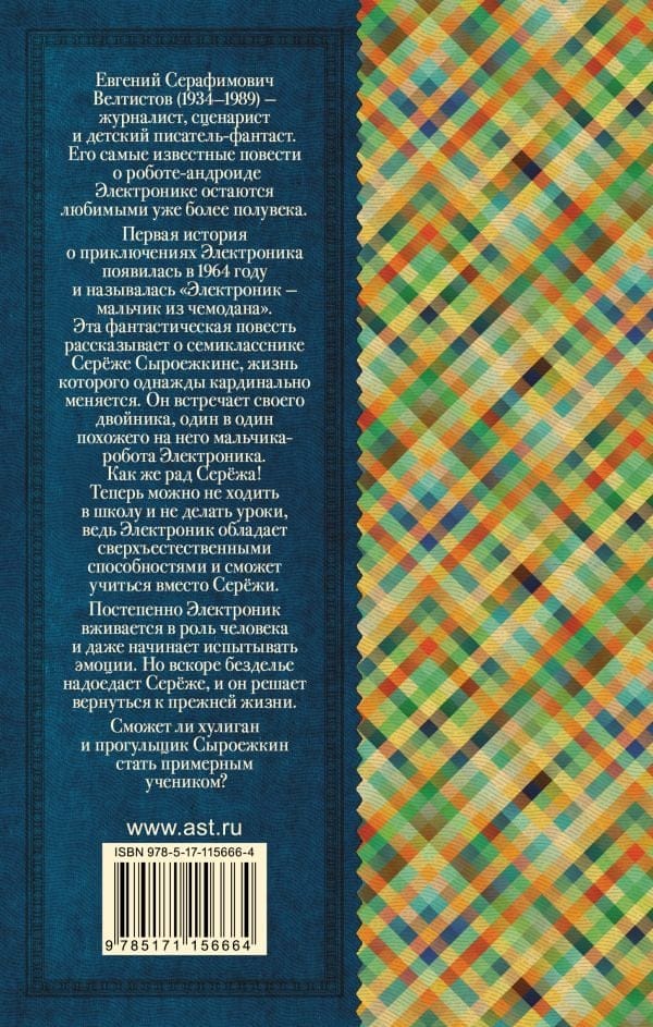 Евгений Серафимович Велтистов (1934–1989) — журналист, сценарист и детский писатель-фантаст. Его самые известные повести о роботе-андроиде Элект­ронике остаются любимыми уже более полувека.