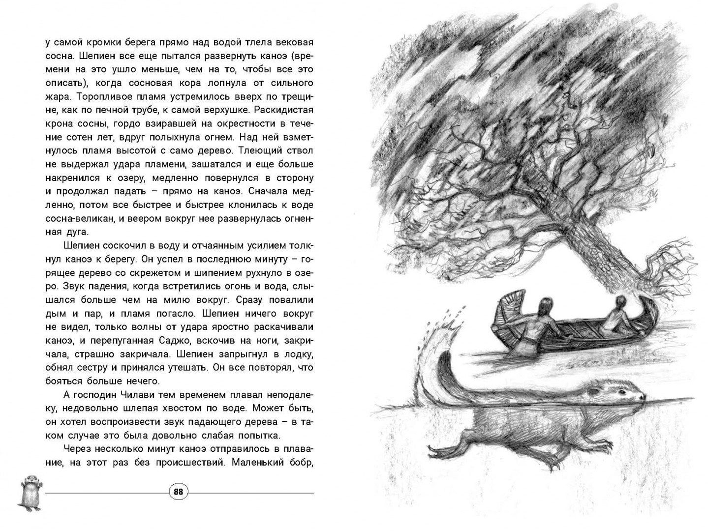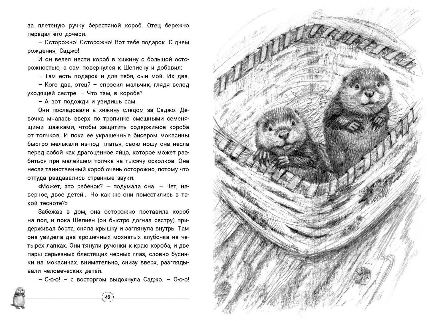 Девочка Саджо и ее брат Шепиен – дети из индейского племени. Однажды отец привозит им двух маленьких бобрят, потерявших свою семью. К этим милым зверькам дети привязываются всей душой. Но однажды с одним бобренком им приходится расстаться; малышу грозит тяжелая жизнь в неволе. Чтобы спасти любимого питомца дети пускаются в долгое и опасное путешествие, с риском для жизни преодолевают множество препятствий. По счастью, они встречают на своем пути немало хороших людей, которые помогают им вернуть маленького друга. Автор этой увлекательной и трогательной повести – англичанин. Большую часть своей жизни он провел в Канаде, в индейском племени. Там он принял индейское имя Серая Сова и именно под ним стал известен всему миру как автор этой книги и как горячий защитник первозданной природы Северной Америки. Писатель считал, что всем людям нужно перенять бережное, поэтическое отношение канадских индейцев к бескрайним лесам и нашим меньшим братьям. И именно такими мотивами пропитана эта знаменитая повесть.
