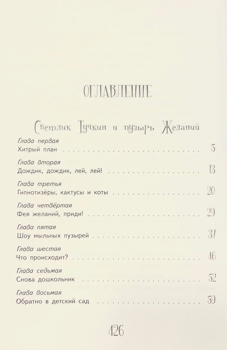 В сборнике «Приключения Светлика Тучкина» издательство «КомпасГид» объединило две повести про первоклассников — «Светлик Тучкин и пузырь желаний» и «Светлик Тучкин и украденные каникулы». Увлекательные истории, точные психологические детали, необычные сюжеты и лёгкий юмор делают книги Виктории Ледерман популярными среди детей и взрослых. И этот сборник — не исключение.
