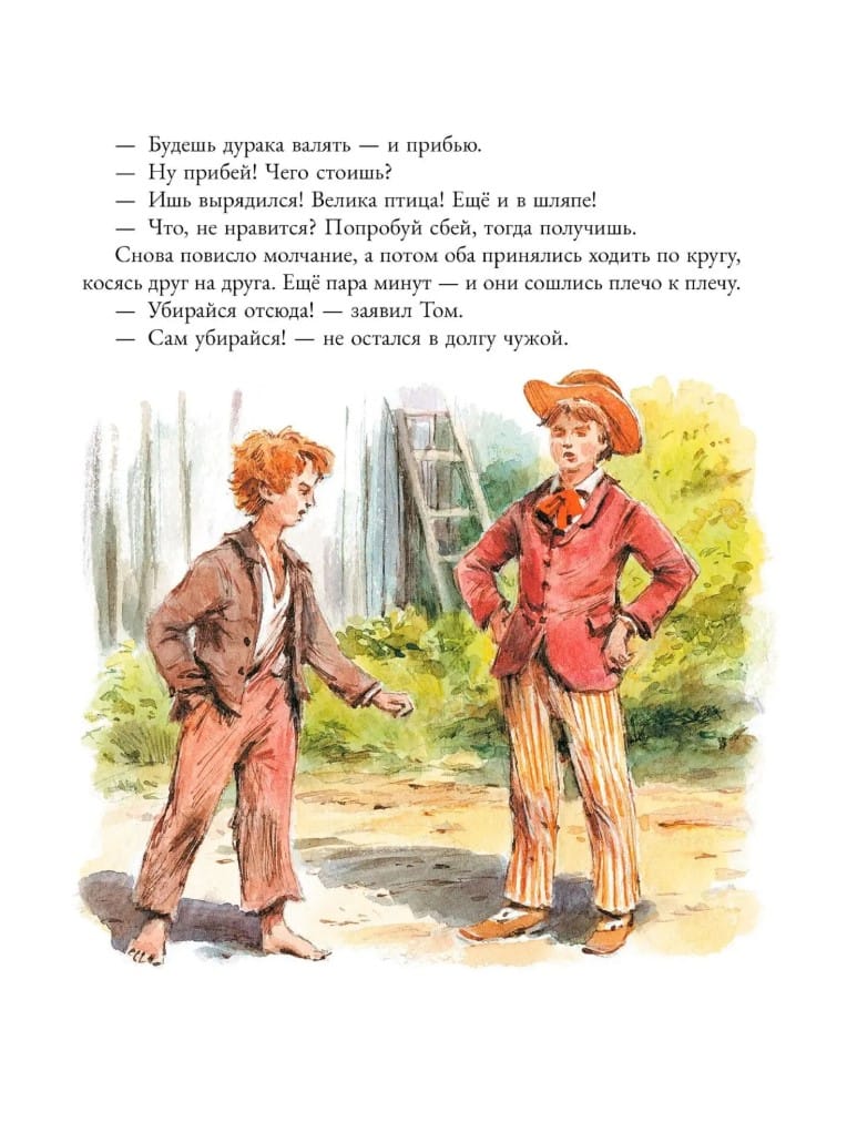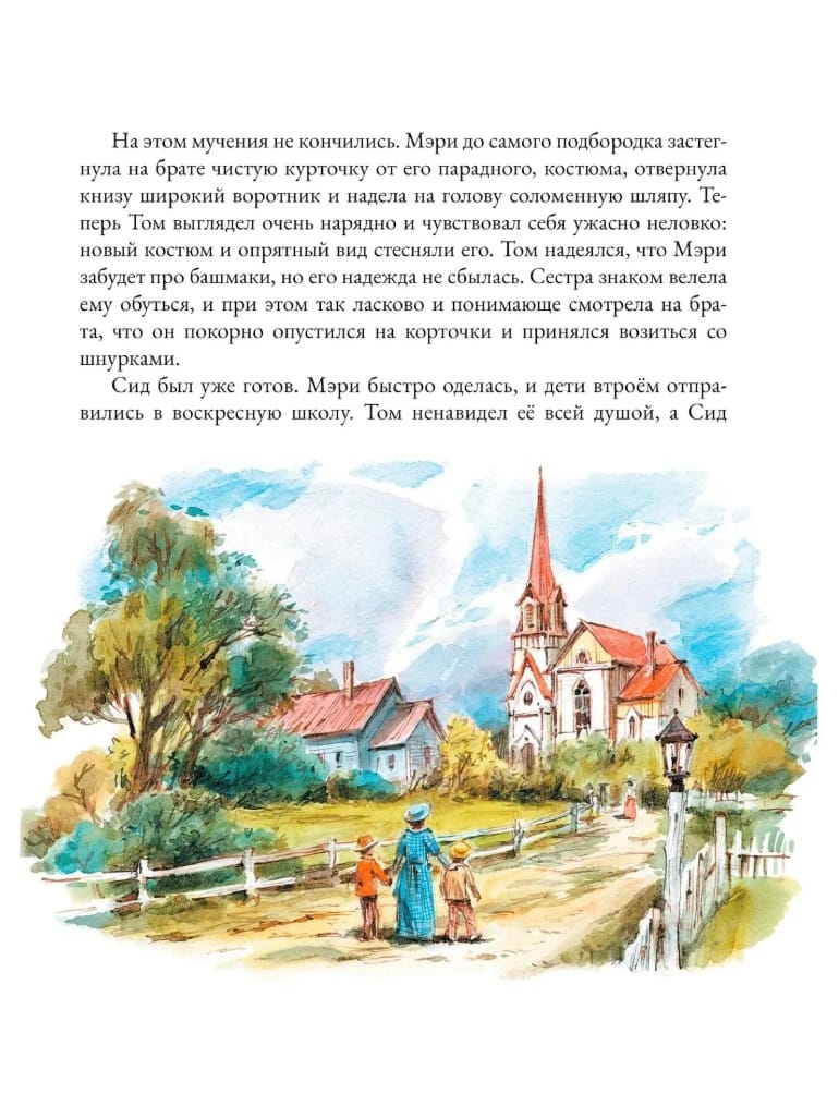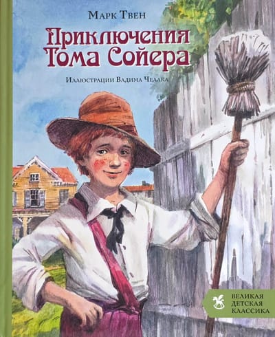 Подарочное издание книги «Приключения Тома Сойера» с роскошными иллюстрациями известного художника Вадима Челака. Они невероятно точно передают атмосферу знаменитой повести Марка Твена. Это не просто книга, а билет в бесконечное лето, где самый хитрый мальчишка превращает покраску забора в аттракцион, за который соседи сами платят сокровищами. Он теряется в пещерах с мертвецами, находит пиратский клад, умудряется присутствовать на собственных похоронах — и при этом спасает невиновных из тюрьмы, потому что живёт по главному правилу: скука — единственный грех, который нельзя простить.
