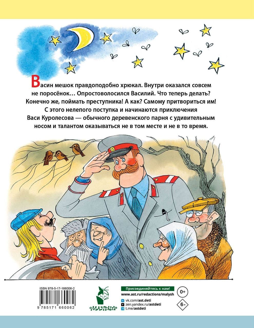«Приключения Васи Куролесова» Юрия Коваля - не просто детективная история. Она основана на реальных событиях. Отец писателя руководил уголовным розыском и рассказывал о преступлениях. Вася Куролесов – юноша из деревни Сычи. Нет в нём ничего выдающегося. Поехал он на рынок за поросёнком, а попал в самый настоящий детектив. Теперь парень ночует в кармановской милиции, получает угрозы от страшных преступников и мечтает вернуть свою спокойную жизнь.