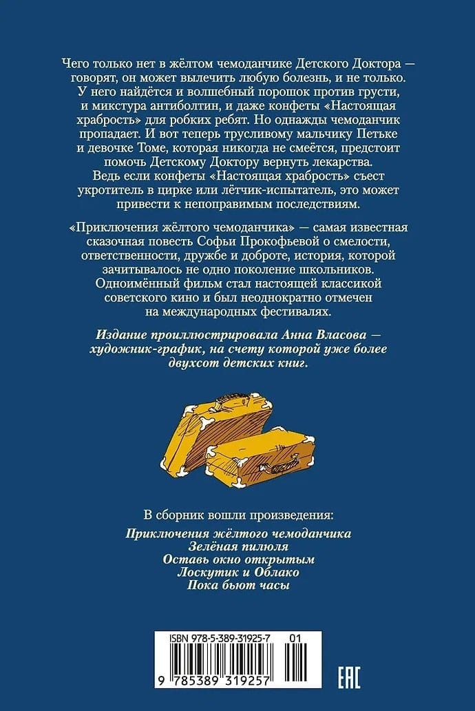 «Приключения жёлтого чемоданчика» — самая известная сказочная повесть Софьи Прокофьевой о смелости, ответственности, дружбе и доброте, история, которой зачитывалось не одно поколение школьников. Одноимённый фильм стал настоящей классикой советского кино и был неоднократно отмечен на международных фестивалях. Помимо «Приключений жёлтого чемоданчика» в сборник вошли и другие популярные произведения писательницы.