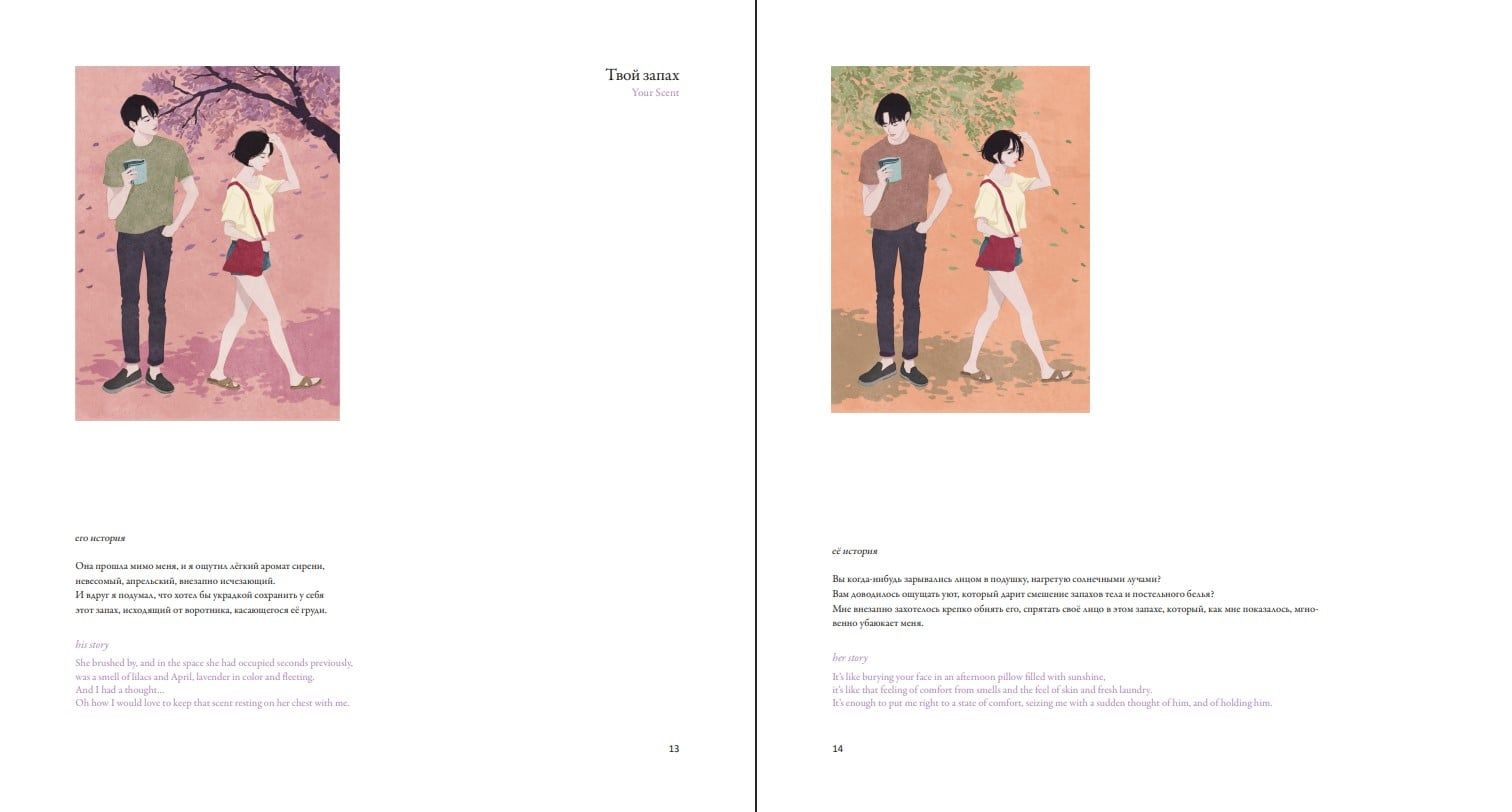 Нежные иллюстрации выражают комфорт, передаваемый через язык тела, а тёплые слова напоминают о ценности человека рядом с нами и о счастье, которое приходит, когда мы чувствуем себя по‑настоящему любимыми.