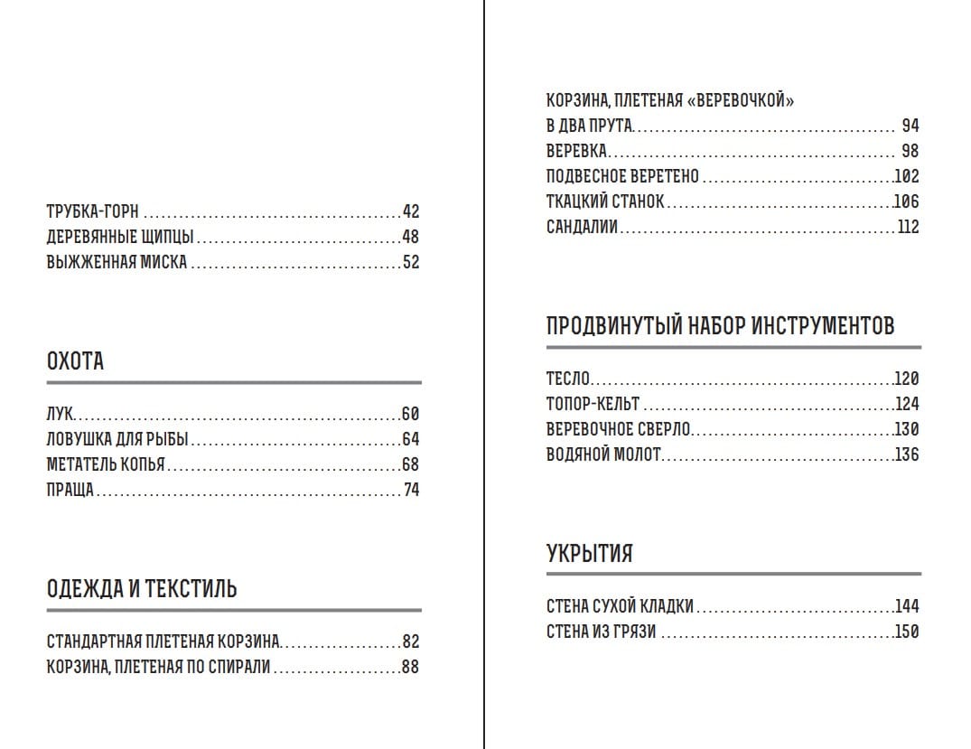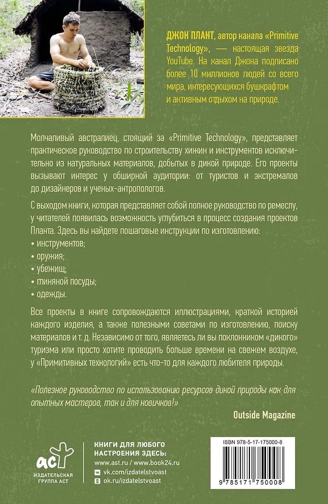 Все проекты в книге сопровождаются иллюстрациями, краткой историей каждого изделия, а также полезными советами по изготовлению, поиску материалов и т. д. Независимо от того, являетесь ли вы поклонником «дикого» туризма или просто хотите проводить больше времени на свежем воздухе, у «Примитивных технологий» есть что-то для каждого любителя природы.