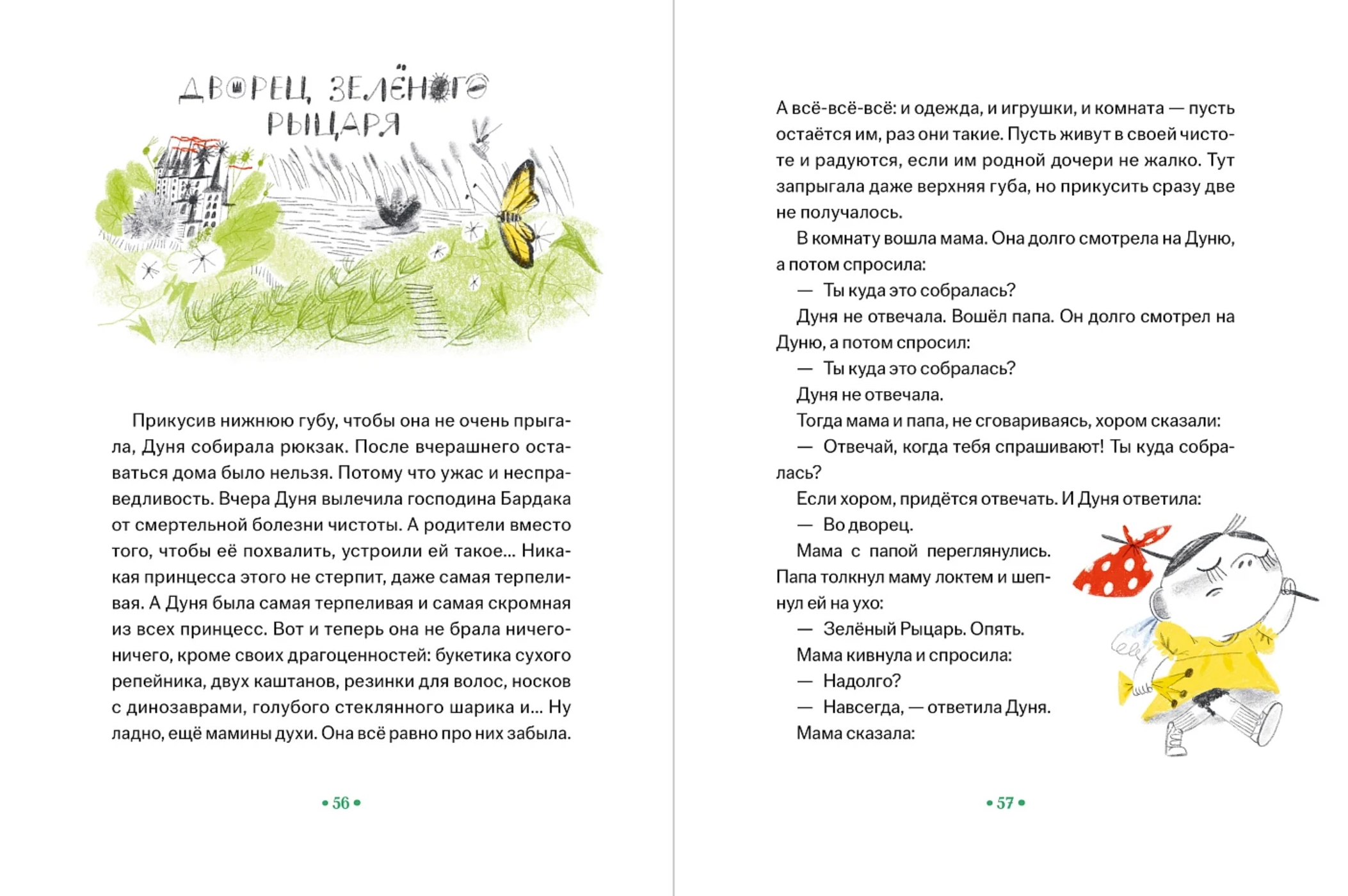Дуня живёт с мамой и папой в доме на окраине города. Самый обычный дом, похожий на деревенский. Самый обычный сад... Но стоит взрослым отвернуться, как всё вокруг преображается и наполняется удивительными существами. Рыцарь Репейник ухаживает за Принцессой Дуней и хочет на ней жениться. Верная Кузябра всегда тут как тут, готова дать совет или прочитать чьи-то мысли. Господин Бардак следит за тем, чтобы Дуня не слишком увлекалась порядком в своей комнате.
