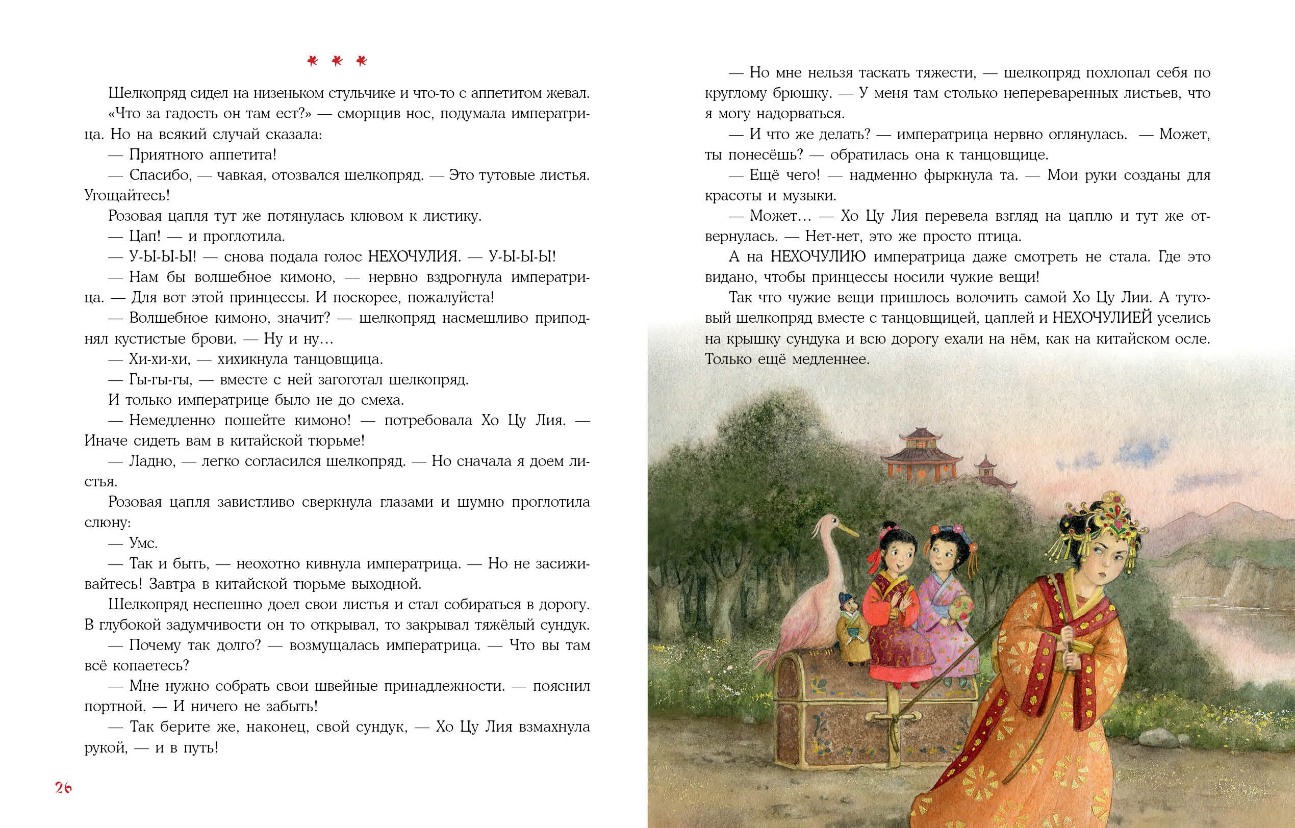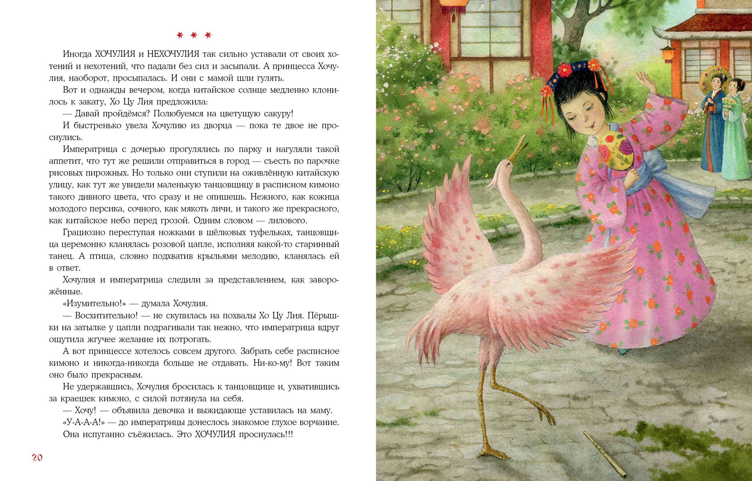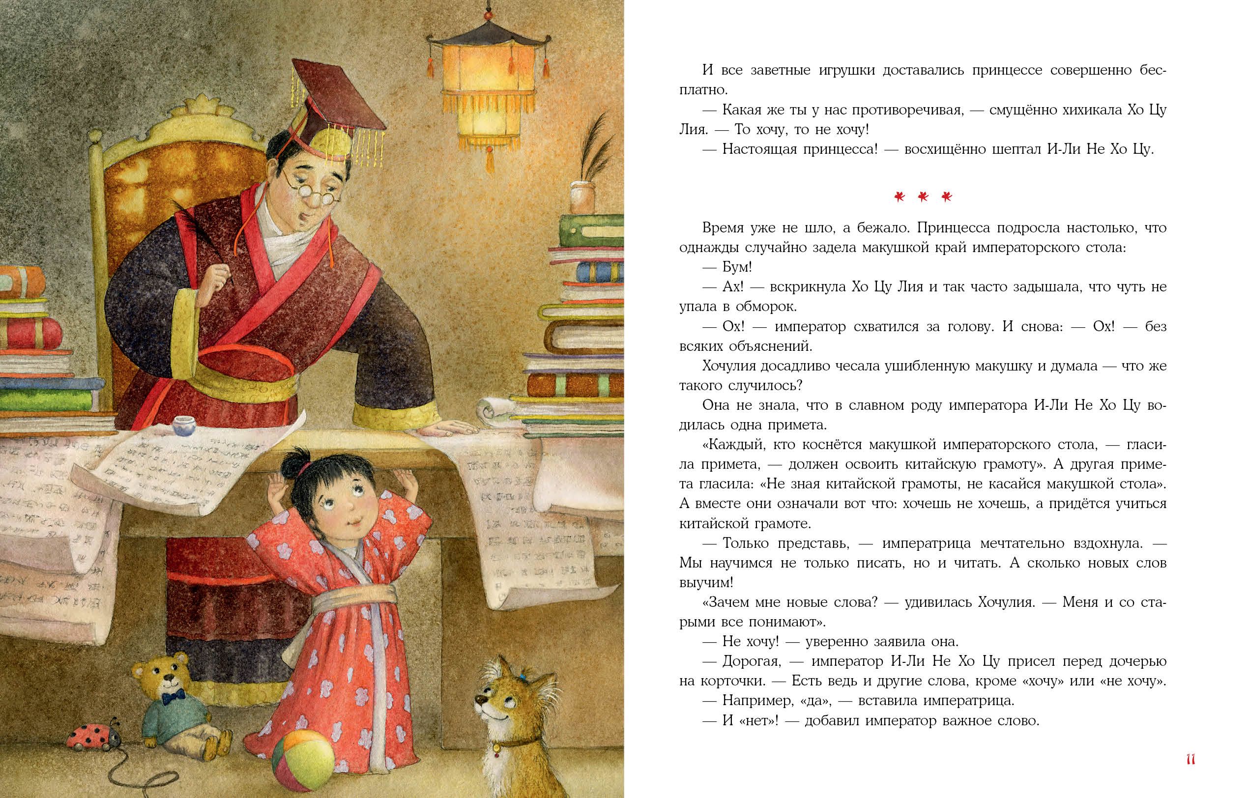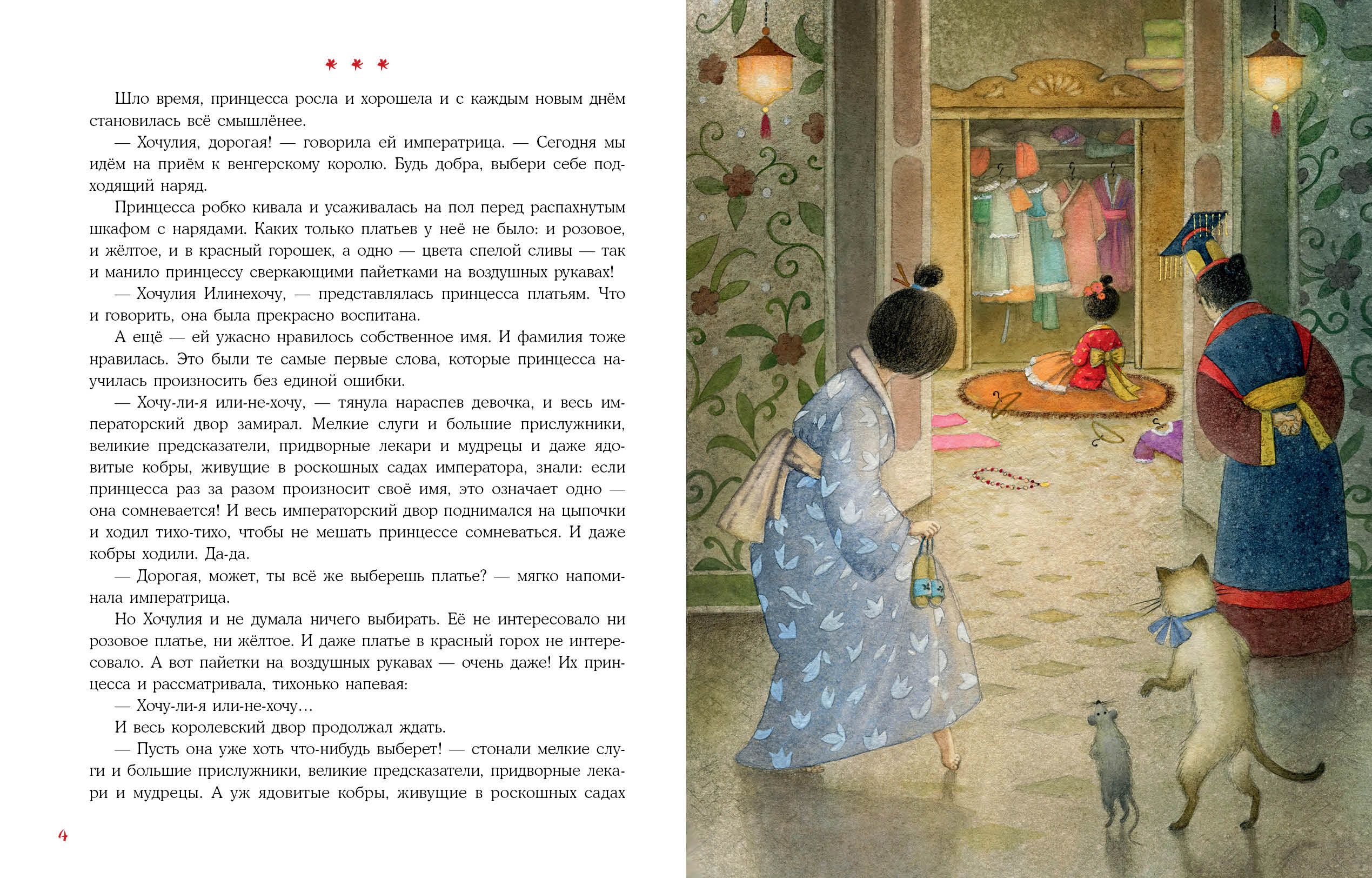 В одном сказочном королевстве жила принцесса Хочулия. А фамилия у неё была — Илинехочу. Да-да, именно так! И самой принцессе, и её родителям, и всему королевству приходилось очень нелегко. Хочулия родилась заколдованной: иногда она превращалась в самого настоящего монстра! Очень капризного. И никто, кроме хитрого тутового шелкопряда, не знал, как её расколдовать… Необычная и весёлая история о том, как важно твёрдо знать, чего хочешь на самом деле.