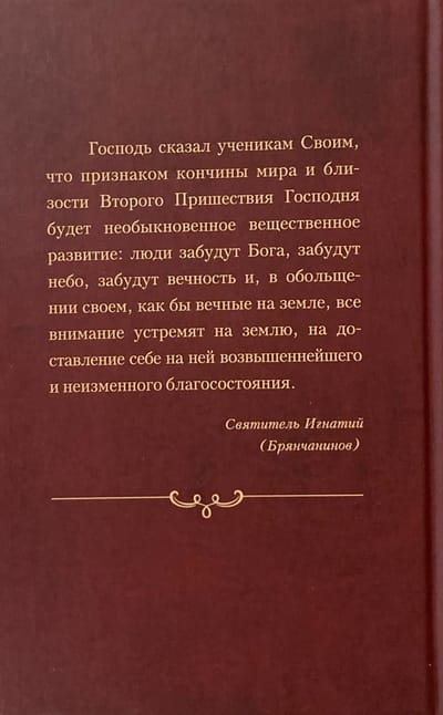 Предлагаемый читателю сборник состоит из статей и писем святителя Игнатия (Брянчанинова) на тему, которая для современных христиан весьма актуальна: последние времена и кончина мира.