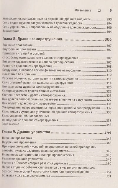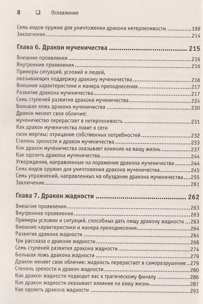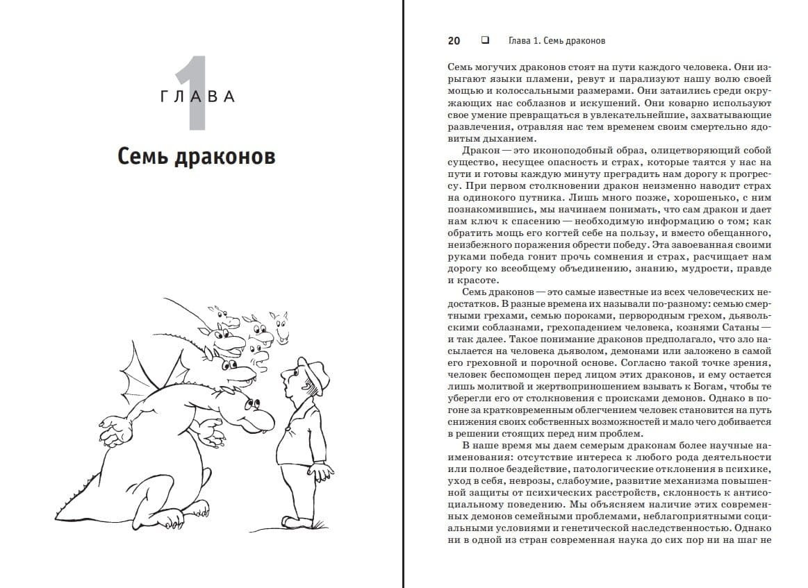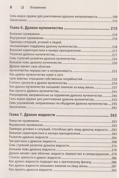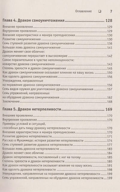 Главные герои этой книги — семь драконов, представляющие собой семь основанных на страхе поведенческих реакций человека. Стивенс построил их парами: дракон высокомерия стоит рядом с драконом самоуничижения, дракон нетерпеливости — с драконом мученичества, дракон жадности — с драконом саморазрушения, а последний, седьмой — дракон упрямства, — способен поладить с каждым из шести предыдущих. Все эти чудовища уже много веков держат человечество в своих лапах, мешая людям жить полноценной жизнью. Они хитры и коварны и хорошо прячутся у нас в душе, чтобы творить свои темные дела исподтишка и не дать себя обнаружить. Однако Хосе Стивенс знает, как их найти и обезвредить. В этой книге он дает оружие, благодаря которому вы сможете приручить своих драконов и использовать силу этих мистических существ.