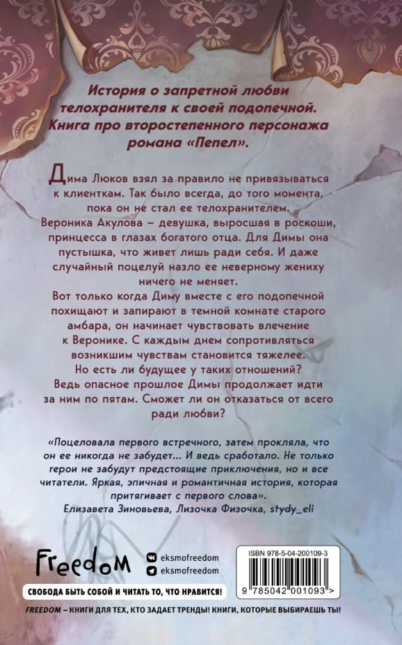 Новинка Ники Сью для всех, кто мечтал узнать больше о второстепенном персонаже романа «Пепел» — Диме Люкове. Вас ждет история запретной любви телохранителя к своей подопечной.