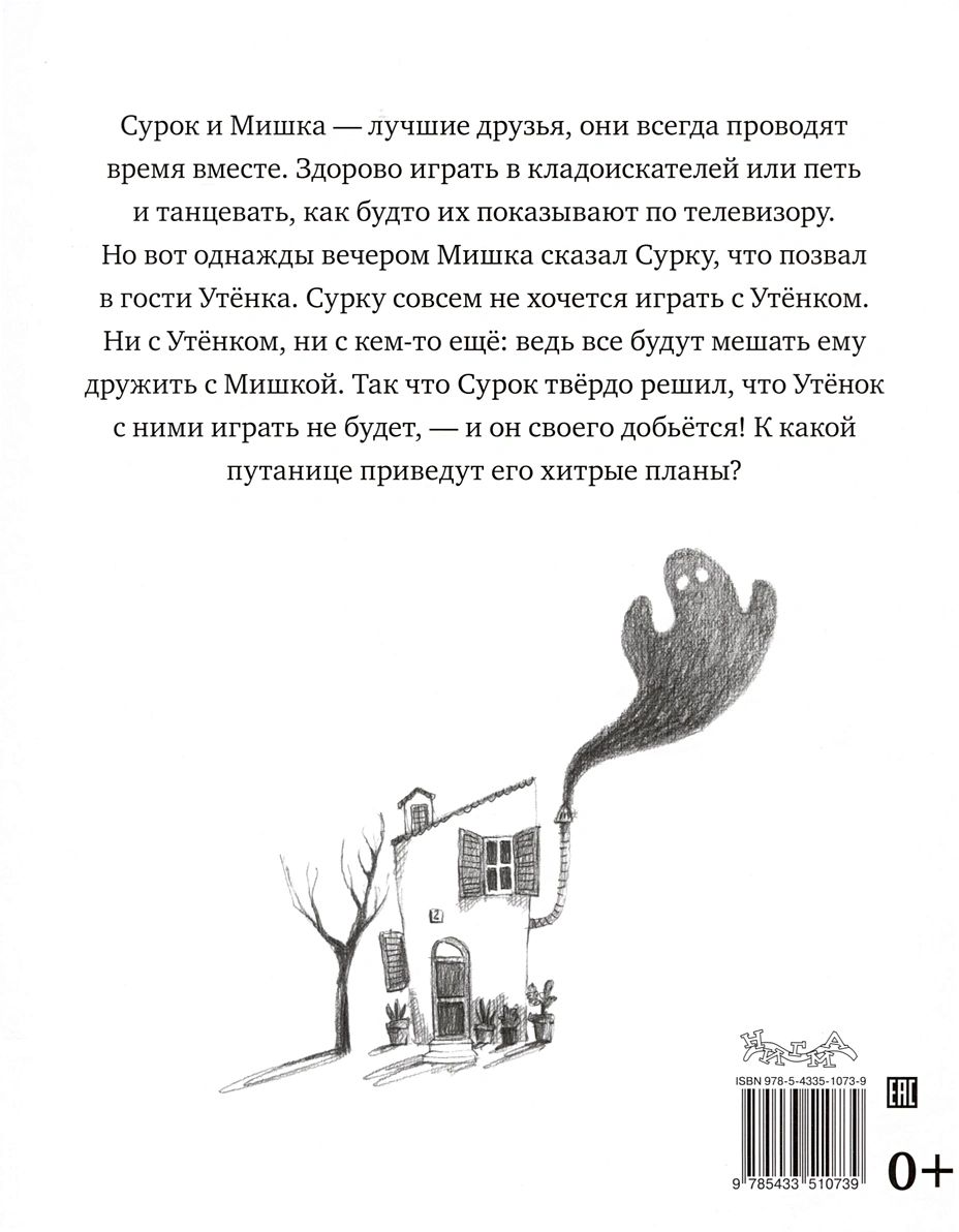 Сурок и Мишка — лучшие друзья, они всегда проводят время вместе. Здорово играть в кладоискателей или петь и танцевать, как будто их показывают по телевизору. Но вот однажды вечером Мишка сказал Сурку, что позвал в гости Утёнка. Сурку совсем не хочется играть с Утёнком. Ни с Утёнком, ни с кем-то ещё: ведь все будут мешать ему дружить с Мишкой. Так что Сурок твёрдо решил, что Утёнок с ними играть не будет, — и он своего добьётся. К какой путанице приведут его хитрые планы?