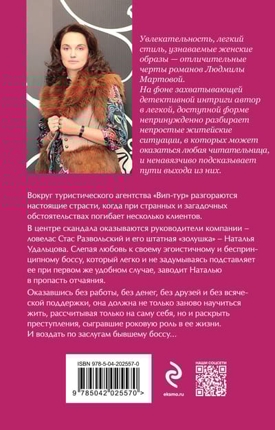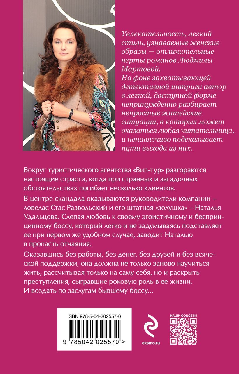 Вокруг туристического агентства «Вип-тур» разгораются настоящие страсти, когда при странных и загадочных обстоятельствах погибает несколько клиентов. В центре скандала оказываются руководители компании — ловелас Стас Развольский и его штатная «золушка» — Наталья Удальцова. Слепая любовь к своему эгоистичному и беспринципному боссу, который легко и не задумываясь подставляет ее при первом же удобном случае, заводит Наталью в пропасть отчаяния. Оказавшись без работы, без денег, без друзей и без всяческой поддержки, она должна не только заново научиться жить, рассчитывая только на саму себя, но и раскрыть преступления, сыгравшие роковую роль в ее жизни. И воздать по заслугам бывшему боссу…