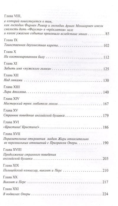 Что скрывается за кулисами парижской Оперы? В чем причина таинственных происшествий? Внезапная смерть примы Карлотты дает шанс на успех молодой и талантливой дублерше-хористке Кристине Даэ... Книга, которая обрела мировую известность благодаря многим экранизациям, театральным постановкам и прежде всего знаменитому бродвейскому мюзиклу Эндрю Ллойда Уэббера.