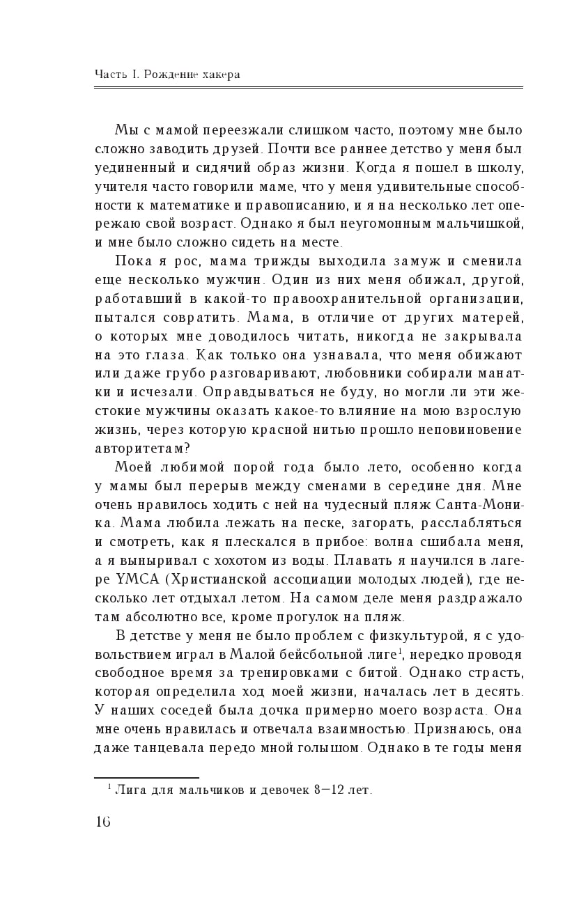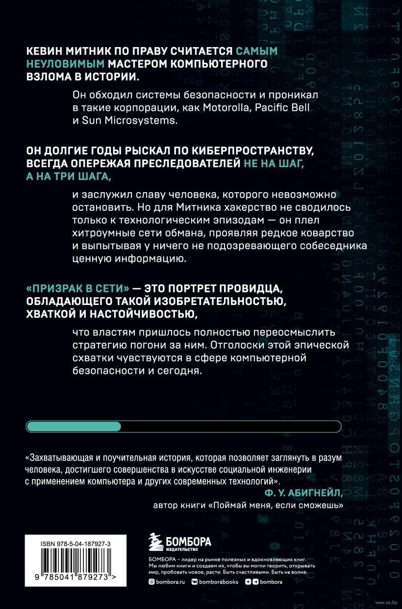 Он долгие годы рыскал по киберпространству, всегда опережая преследователей не на шаг, а на три шага, и заслужил славу человека, которого невозможно остановить. Но для Митника хакерство не сводилось только к технологическим эпизодам — он плел хитроумные сети обмана, проявляя редкое коварство и выпытывая у ничего не подозревающего собеседника ценную информацию. Он обходил системы безопасности и проникал в такие корпорации, как Motorolla, Pacific Bell и Sun Microsystems. Но когда ФБР начало брать хакера в кольцо, он пустился в бега — и началась сложнейшая игра в «кошки-мышки». В ходе этой облавы Митник сменил несколько личностей, городов, не раз чудом уходил от ареста — до последней неравной схватки с агентами, которые во что бы то ни стало стремились его арестовать.