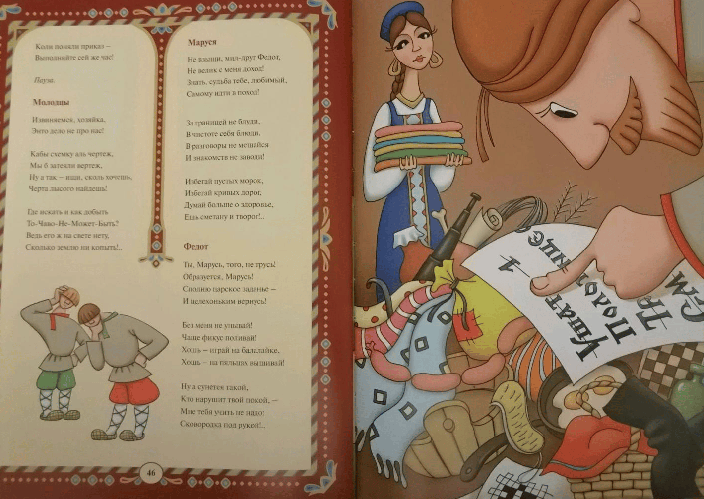 Сказка «Про Федота-стрельца, удалого молодца» известного актера театра и кино, поэта Леонида Филатова – одна из самых ярких книг XX века. Характерные персонажи, остроумные мизансцены, великолепный слог, блестящий юмор автора сделали ее лучшим произведением для семейного чтения, текст которого давно разобран на цитаты и анекдоты. Их можно часто слышать из уст совершенно разных поколений людей: «Вызывает антирес ваш технический прогресс», «Я с тобою не шуткую, я сурьезно говорю», «Мы не жалуем Федота, а народ – наоборот», «Действуй строго по закону, то бишь действуй… втихаря» и т.д.