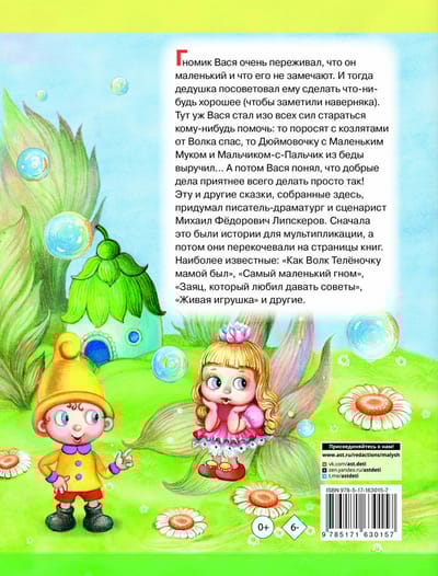 Михаил Фёдорович Липскеров — писатель-драматург и сценарист. Тридцать четыре его сценария стали признанными мультипликационными лентами. Самые популярные — «Как Волк Телёночку мамой был», «Самый маленький гном», «Заяц, который любил давать советы», «Живая игрушка» и другие. Потом эти истории перекочевали на страницы книг и стали сказками. Самые известные из них вошли в эту книгу.