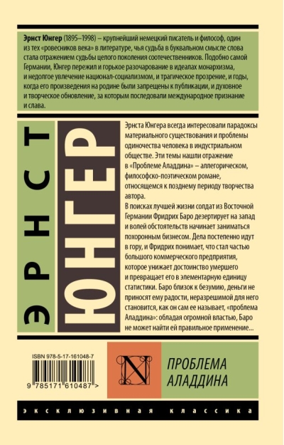 Эрнста Юнгера всегда интересовали парадоксы материального существования и проблемы одиночества человека в индустриальном обществе. Эти темы нашли отражение в «Проблеме Аладдина» — аллегорическом, философско-поэтическом романе, относящемся к позднему периоду творчества автора.
