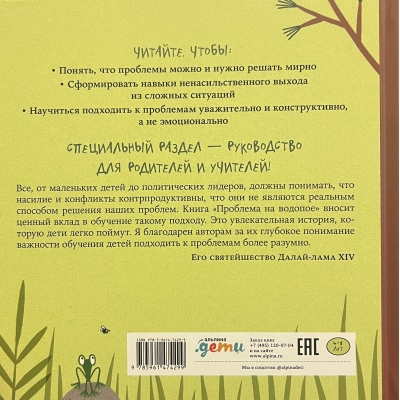 У лесных зверей проблема — они никак не могут поделить озеро, свой водопой. Каждый считает, что право пить оттуда воду принадлежит только ему, обстановка накалена до предела! Медвежонок Эмо и его лучший друг, яркая птичка Чики, уверены: есть другой способ найти выход из этой ситуации, чем скандал. Вместе с поссорившимися зверями они анализируют проблему и изучают конструктивные способы ее решения. Благодаря этому все лесные жители не только устанавливают правила использования водопоя, но и приобретают навыки, которые можно применять для решения других конфликтов, не прибегая к драке. А вместе с ними — и маленькие читатели.