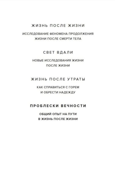 Рэймонд Моуди — философ, психолог и психиатр — впервые описал околосмертные переживания в своем бестселлере «Жизнь после жизни» (1975), навсегда изменившем отношение общества к смерти и умиранию. В новой книге, написанной в 2010 году в соавторстве с писателем и режиссером-документалистом Полом Пэрри, он исследует еще более необычное явление: разделенный околосмертный опыт, то есть совместное переживание смерти вместе с близкими и любимыми людьми. Здесь снова анализируется большой корпус личных свидетельств, включая собственные воспоминания доктора Моуди о смерти матери. Эта книга дарит утешение и надежду и проливает свет на таинственное приключение, которое неминуемо ожидает каждого из нас в конце пути.