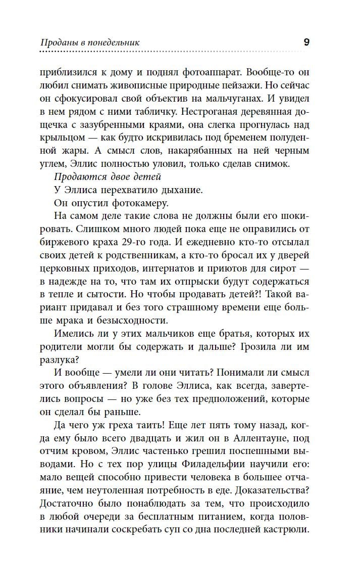Репортер Эллис Рид делает снимок двух мальчиков на фоне обветшалого дома в сельской местности и только позже замечает рядом вывеску «Продаются двое детей».