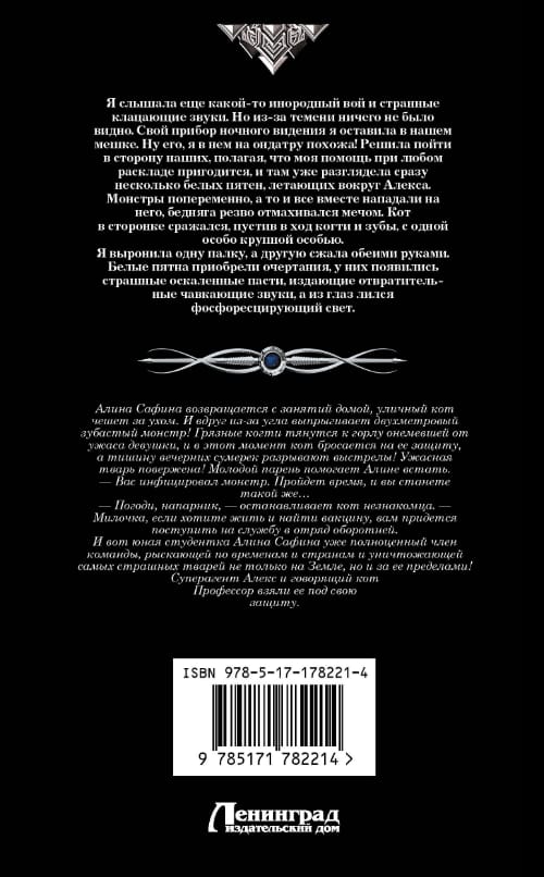 И вот юная студентка Алина Сафина уже полноценный член команды, рыскающей по временам и странам, меняющей костюмы, речь и обличье, спасая человеческие жизни и уничтожая самых страшных тварей не только на Земле, но и за ее пределами! Суперагент Алекс Орлов и говорящий кот Профессор взяли ее под свою защиту.