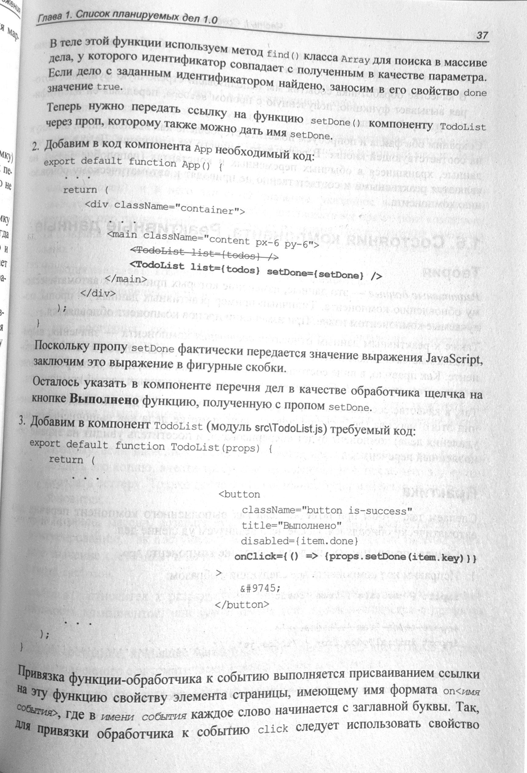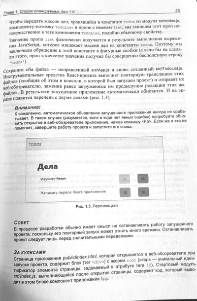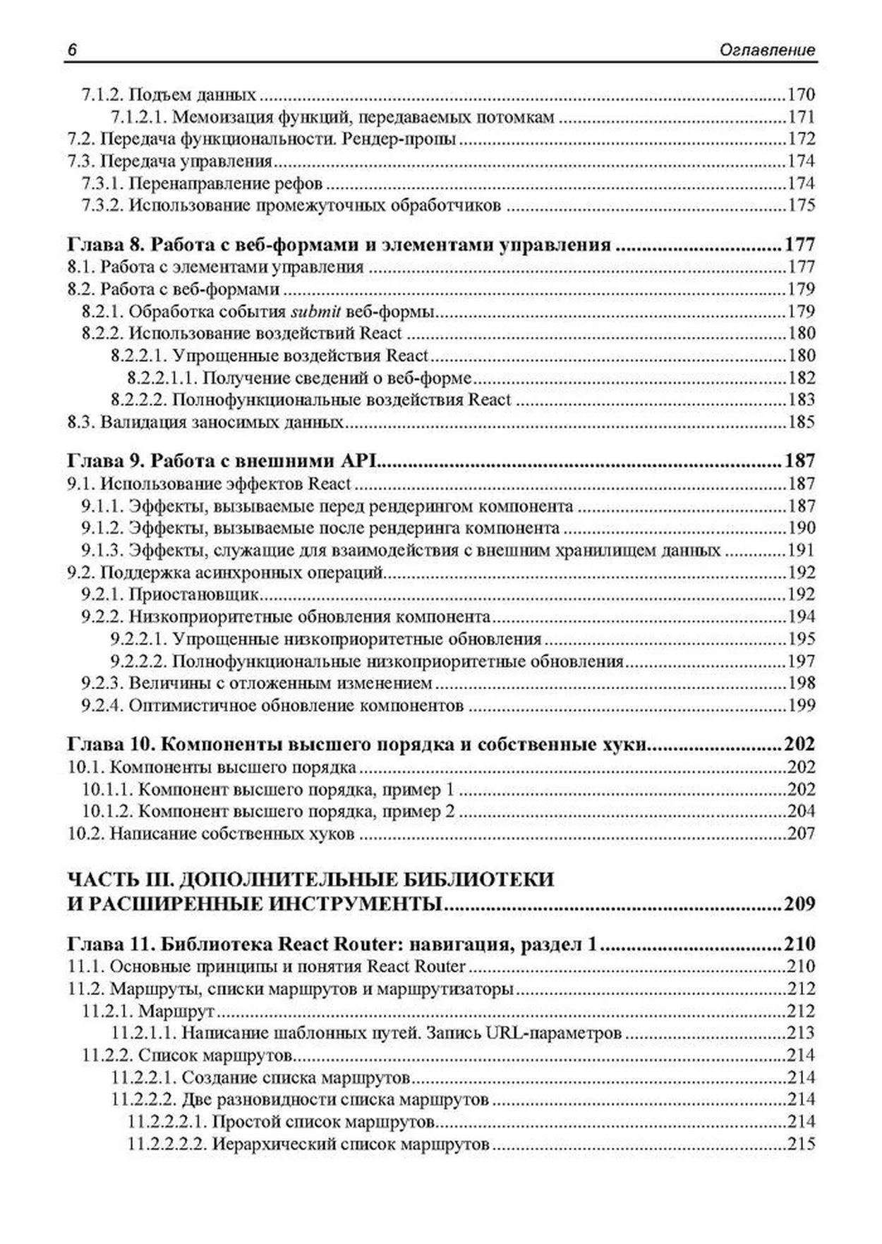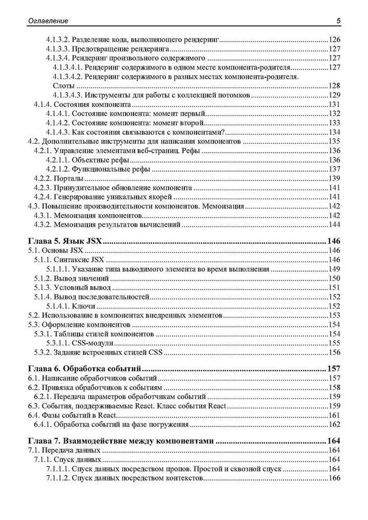 Книга посвящена программированию веб-приложений на языке JavaScript с применением популярного веб-фреймворка React. Дается вводный курс, наглядно, по шагам описывающий разработку несложного веб-приложения — списка запланированных дел. Описываются базовые инструменты: создание и настройка React-проекта, написание компонентов, язык JSX, передача данных между компонентами и создание веб-форм. Рассматриваются полезные дополнительные библиотеки: React Router (навигация), Redux, React Redux и Redux Toolkit (централизованное хранилище данных), Formik (быстрая разработка веб-форм), Yup (валидация), React Reveal (анимационные эффекты) и др. Рассказывается о разделении кода, обработке ошибок, средствах отладки, публикации готового веб-приложения и рендеринге на стороне сервера.