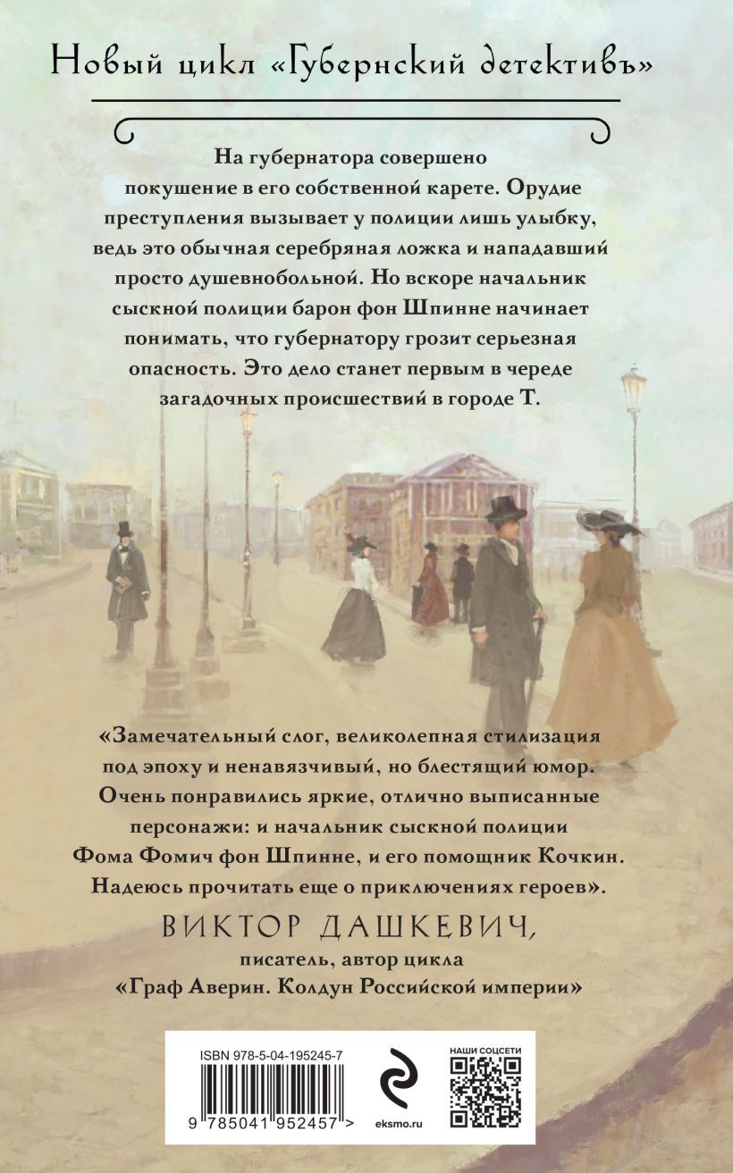 На губернатора совершено покушение в его собственной карете. Орудие преступления вызывает у полиции лишь улыбку, ведь это — обычная серебряная ложка, и нападавший просто душевнобольной. Но вскоре начальник сыскной полиции барон фон Шпинне начинает понимать, что губернатору грозит серьезная опасность. Это дело станет первым в череде загадочных происшествий в городе Т.