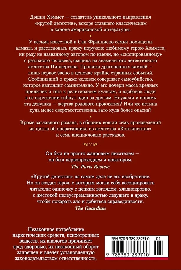 У весьма известной в Сан-Франциско семьи похищены алмазы, и расследовать кражу поручено любимому герою Хэммета, ни разу не названному автором по имени, но «скопированному» с реального человека, сыщика из знаменитого детективного агентства Пинкертона.