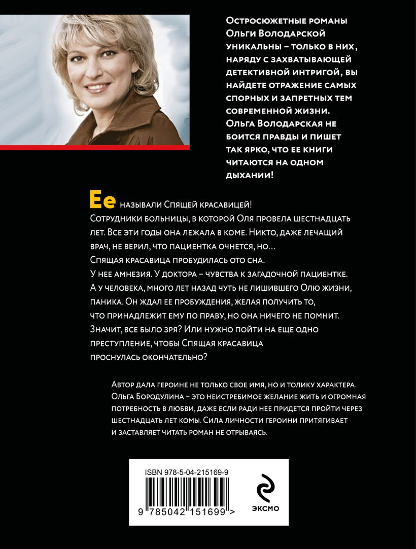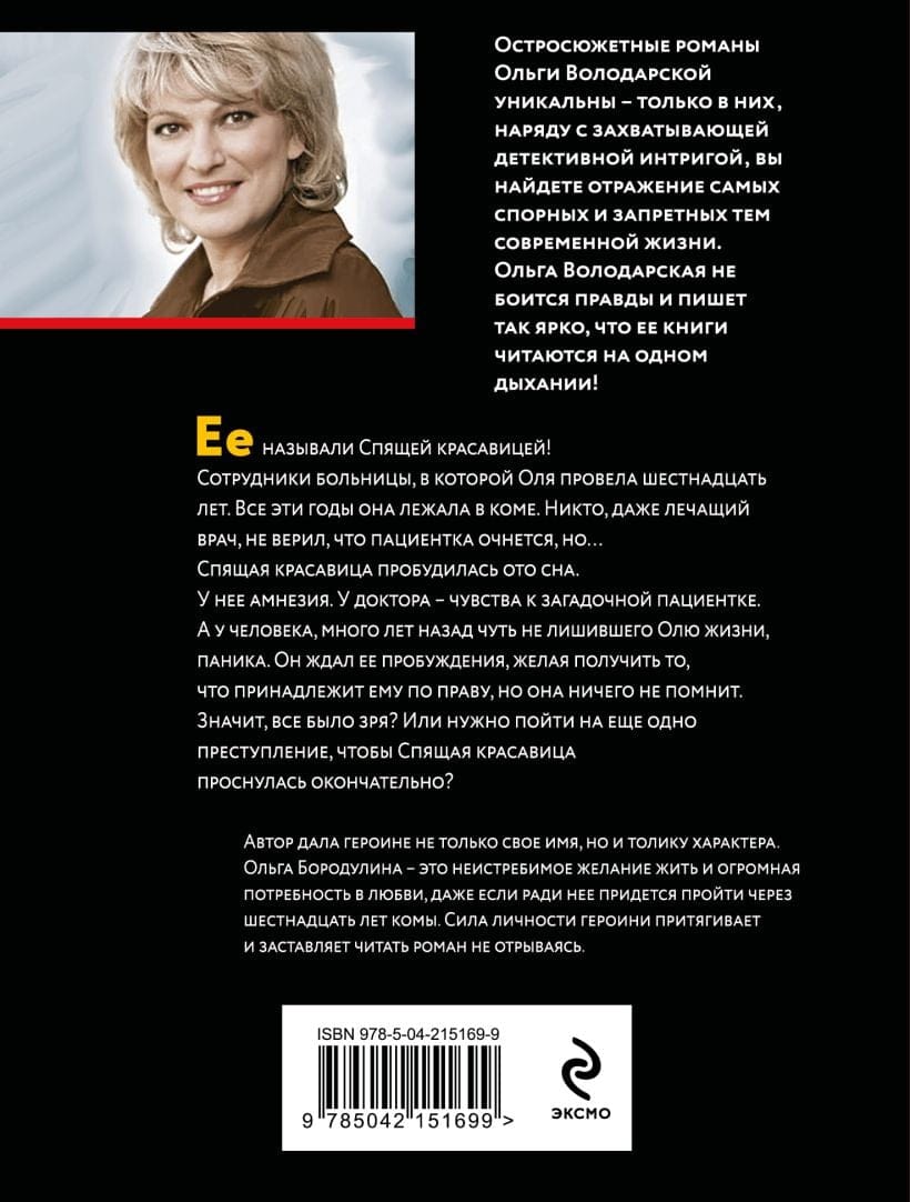 У нее амнезия. У доктора — чувства к загадочной пациентке. А у человека, много лет назад чуть не лишившего Олю жизни, паника. Он ждал ее пробуждения, желая получить то, что принадлежит ему по праву, но она ничего не помнит. Значит, все было зря? Или нужно пойти на еще одно преступление, чтобы Спящая красавица проснулась окончательно?