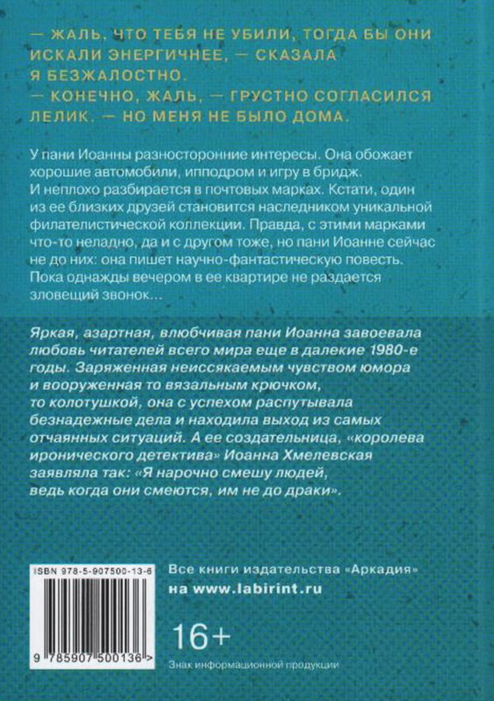 Нет, нет и нет! Пани Иоанна теперь - солидный литератор и не собирается больше впутываться в криминальные истории. Она наконец-то имеет право пожить спокойно и закончить наконец научно-фантастическую повесть о космических лучах и прочих интересных штуковинах... Тем более, что за консультантами-ядерщиками ей приходится буквально гоняться. Но однажды поздним вечером раздается звонок, и неизвестный человек шепчет в трубку: «Спасите! Они убьют меня!..» И Иоанна срывается из-за рабочего стола.