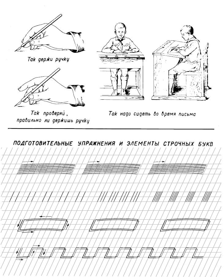 Прописи для учащихся 1-го класса начальной школы, которые помогут вашему ребенку научится красиво писать. В прописях даются образцы правильного написания букв, их элементов и соединений. По изданию 1947 года.