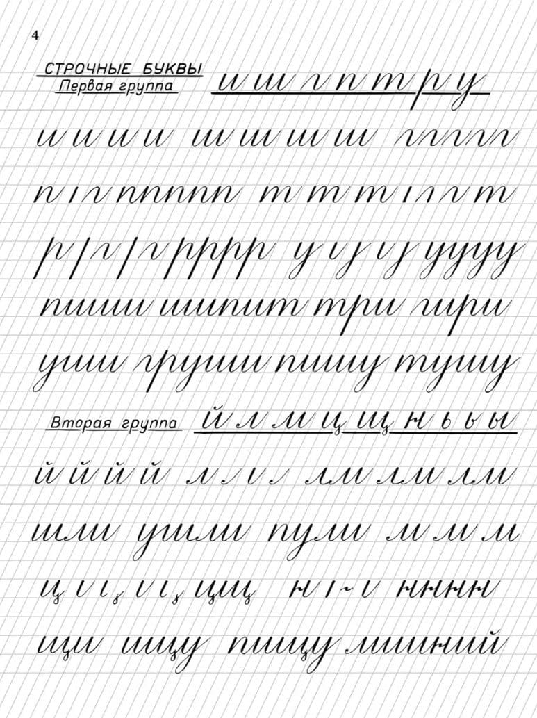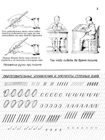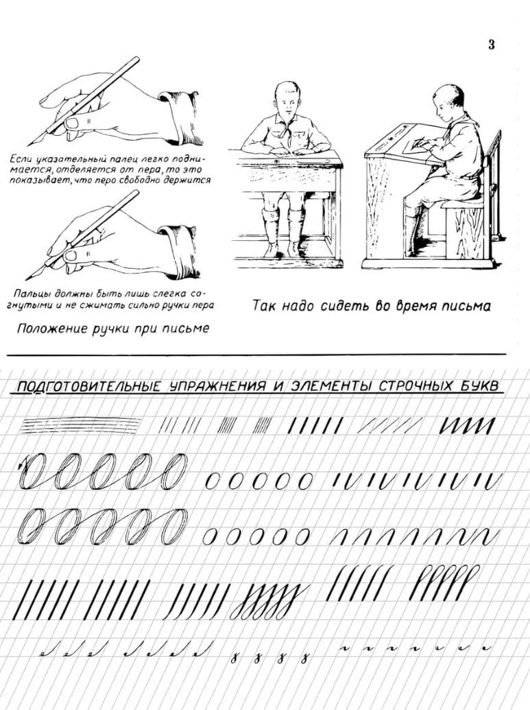 В прописях даются образцы правильного написания букв, их элементов и соединений.