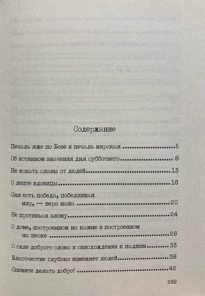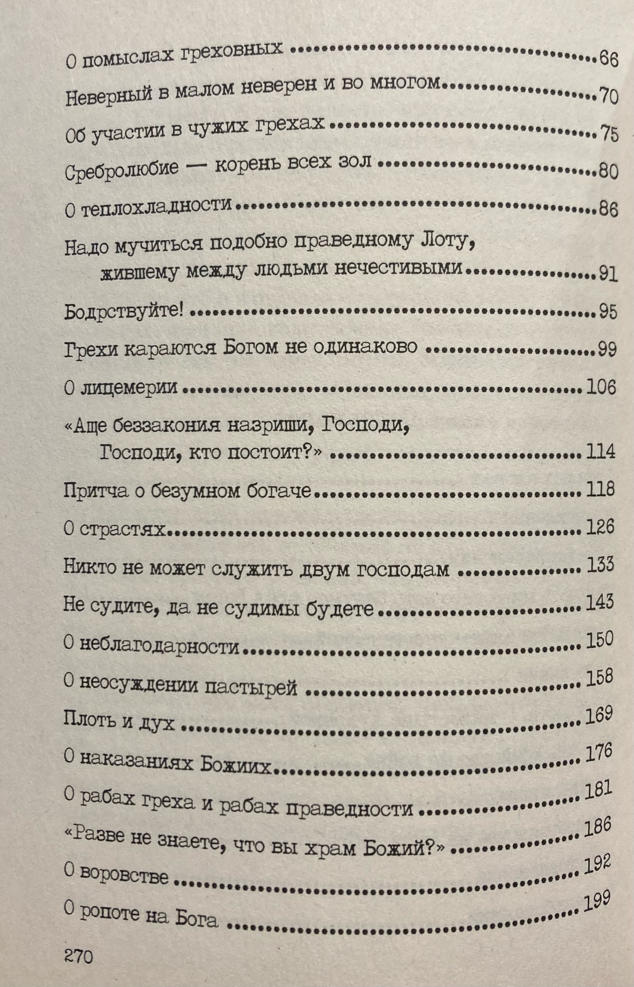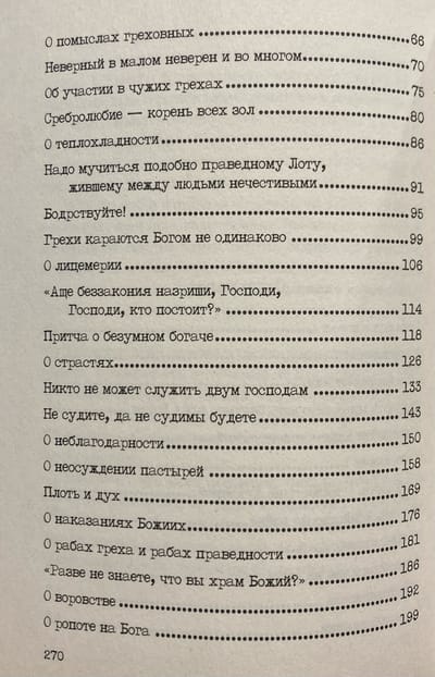 В первую книгу вошли избранные проповеди, посвященные темам, связанным с болезнями души и тела. Во вторую книгу — избранные проповеди, посвященные добродетелям. В третью — избранные проповеди, посвященные борьбе со страстями.