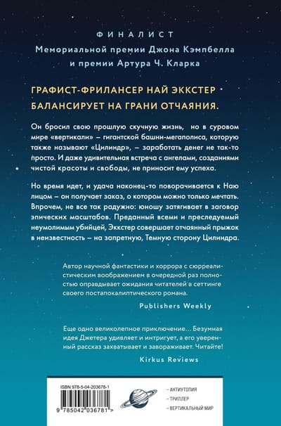 Цилиндр — гигантская структура, возвышающаяся на мили над поверхностью неизвестной Земли будущего. Эккстер отказался от скучной работы с девяти до пяти на горизонтальных уровнях мегаполиса, чтобы оказаться в самом центре настоящих событий — на «вертикали», где фрилансеры, воюющие племена и другие кочевники живут вдоль канатов и трамплинов на внешнем краю здания.