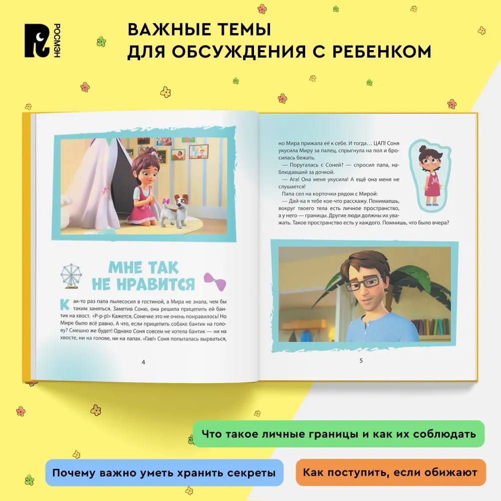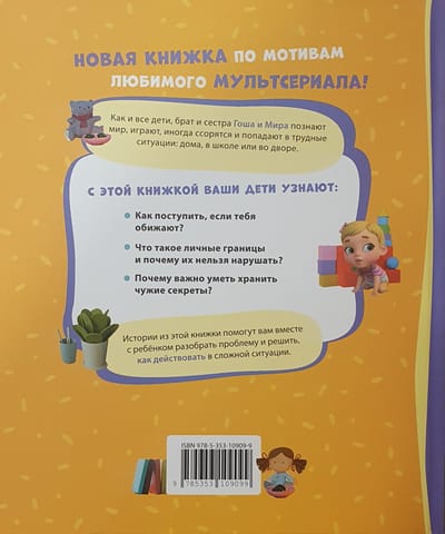 Новая книжка по мотивам любимого мультсериала. Как и все дети, брат и сестра Гоша и Мира познают мир, играют, иногда ссорятся и попадают в трудные ситуации: дома, в школе или во дворе. Как поступить, если тебя обижают? Что такое личные границы и почему их нельзя нарушать? Почему важно уметь хранить чужие секреты? На эти и другие важные вопросы Мире и Гоше помогают ответить мама и папа. Истории из этой книжки помогут вам вместе с ребенком разобрать проблему и решить, как действовать в сложной ситуации.