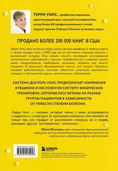 Терри Уолс вела активный образ жизни, бегала марафоны и любила ходить в пешие походы, пока в 2000 году ей не поставили страшный диагноз — рассеянный склероз. Буквально за считанные месяцы она оказалась прикованной к инвалидному креслу, ее тело больше не слушалось ее, а карьера успешного врача шла под откос из-за потери концентрации и вечной усталости — спутников сложной болезни. Будучи настоящим исследователем, Терри Уолс решила не сдаваться и победить страшный диагноз во что бы то ни стало — с кропотливой дотошностью она изучала новейшие исследования и опыты на мышах, а также сутками читала научные статьи. В результате беспрерывного поиска она создала Протокол, который действительно помогает вылечить симптомы рассеянного склероза и большинства других аутоиммунных заболеваний. Система доктора Уолс предполагает изменения в рационе и несложную систему физических тренировок, которые рассчитаны на разные аудитории пациентов в зависимости от тяжести степени болезни. Удивительно вдохновляющая история врача, которая не перестала бороться и изобрела способ вернуть привычную жизнь себе и миллионам людей с тяжелым диагнозом, которые уже были готовы отчаяться и потерять надежду.
