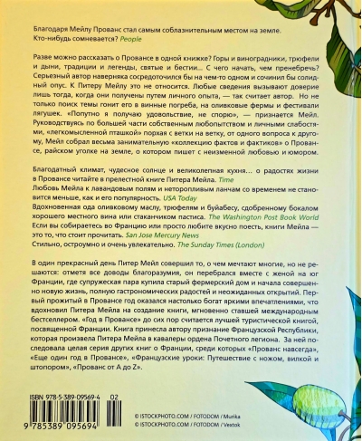 Разве можно рассказать о Провансе в одной книжке? Горы и виноградники, трюфели и дыни, традиции и легенды, святые и бестии... С чего начать, чем пренебречь? Серьезный автор наверняка сосредоточился бы на чем-то одном и сочинил бы солидный опус. К Питеру Мейлу это не относится. Любые сведения вызывают доверие лишь тогда, когда они получены путем личного опыта, – так считает автор. Но не только поиск темы гонит его в винные погреба, на оливковые фермы и фестивали лягушек. «Попутно я получая удовольствие, не спорю», – признается Мейл. Таким образом, руководствуясь по большей части собственным любопытством и личными слабостями, «легкомысленной пташкой» порхая с ветки на ветку, от одного вопроса к другому, Мейл создал весьма занимательную «коллекцию фактов и фактиков» о Провансе, райском уголке на земле, о котором автор пишет с неизменной любовью и юмором.