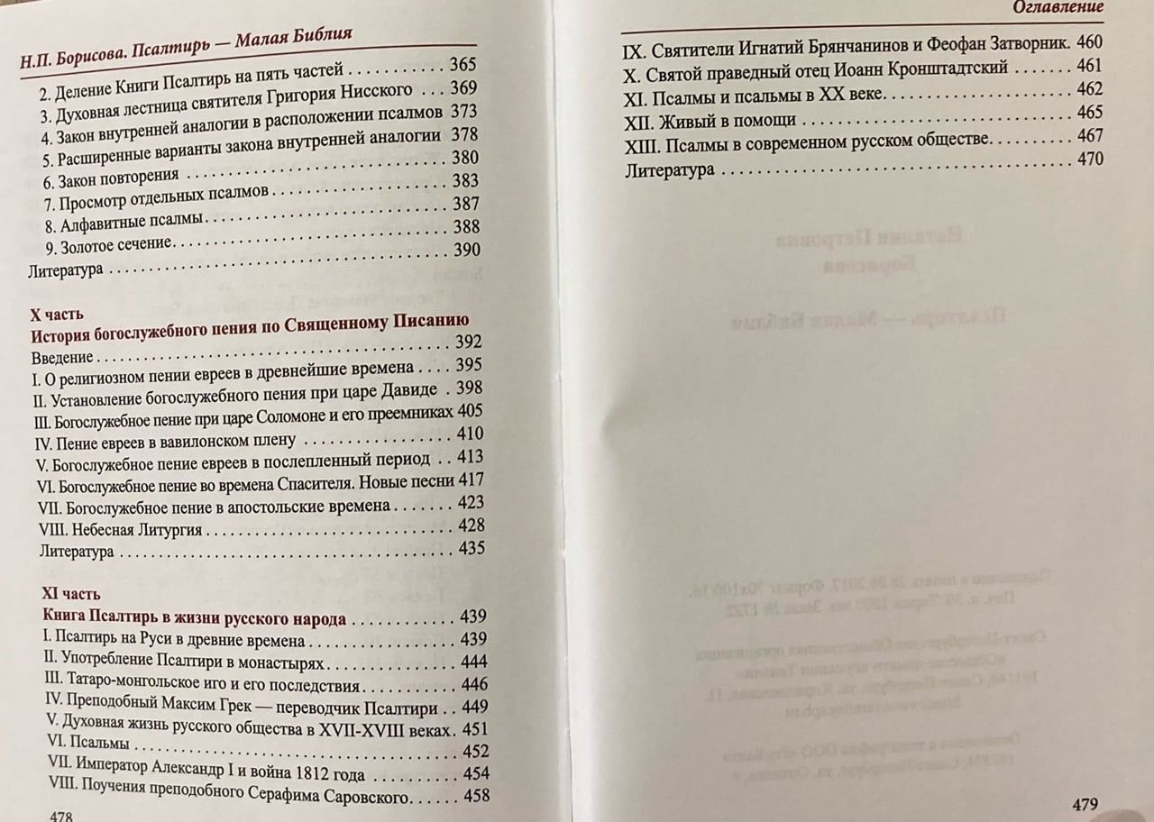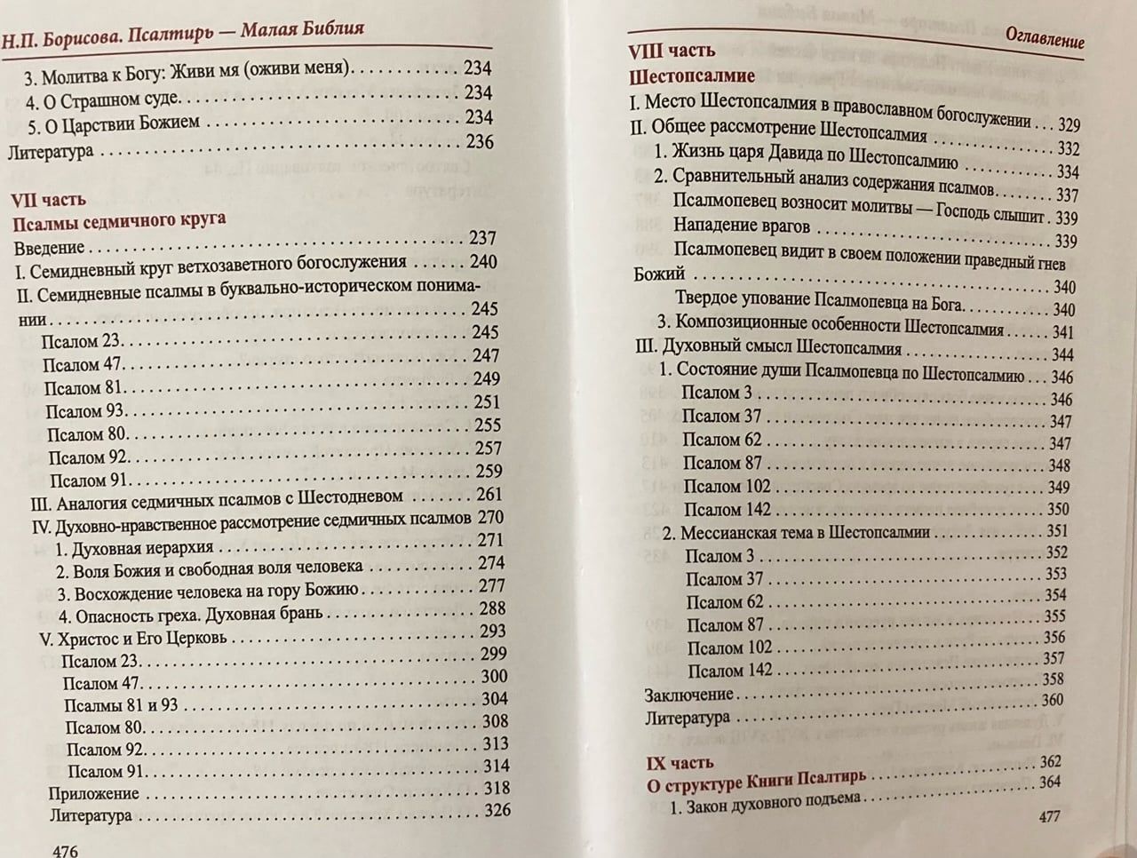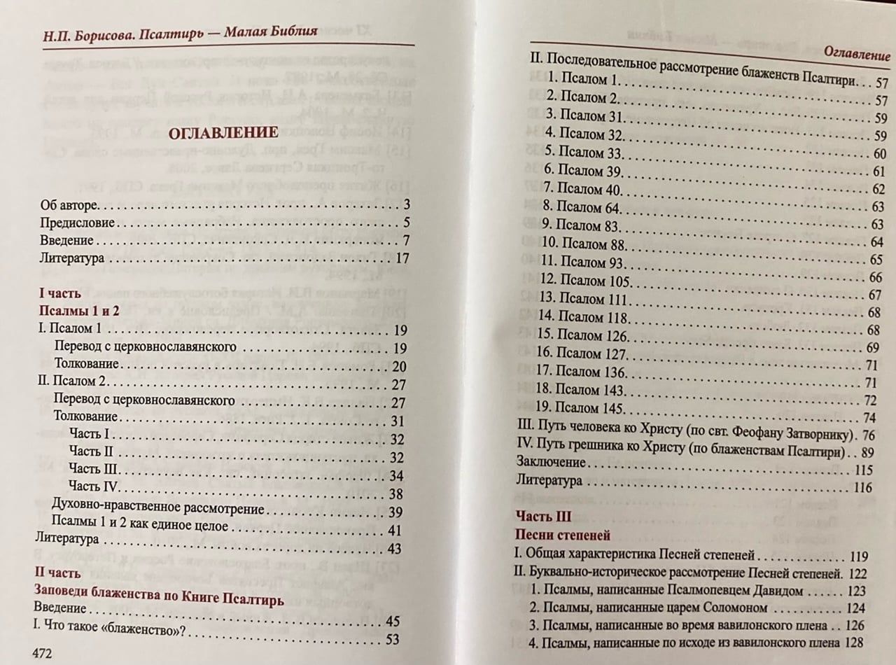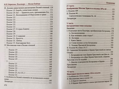 Книга представляет собой тематическое исследование Псалтири. Такой подход позволяет увидеть Псалтирь не просто как сборник отдельных псалмов, а как целостное произведение, созданное по строго определенным духовным законам.