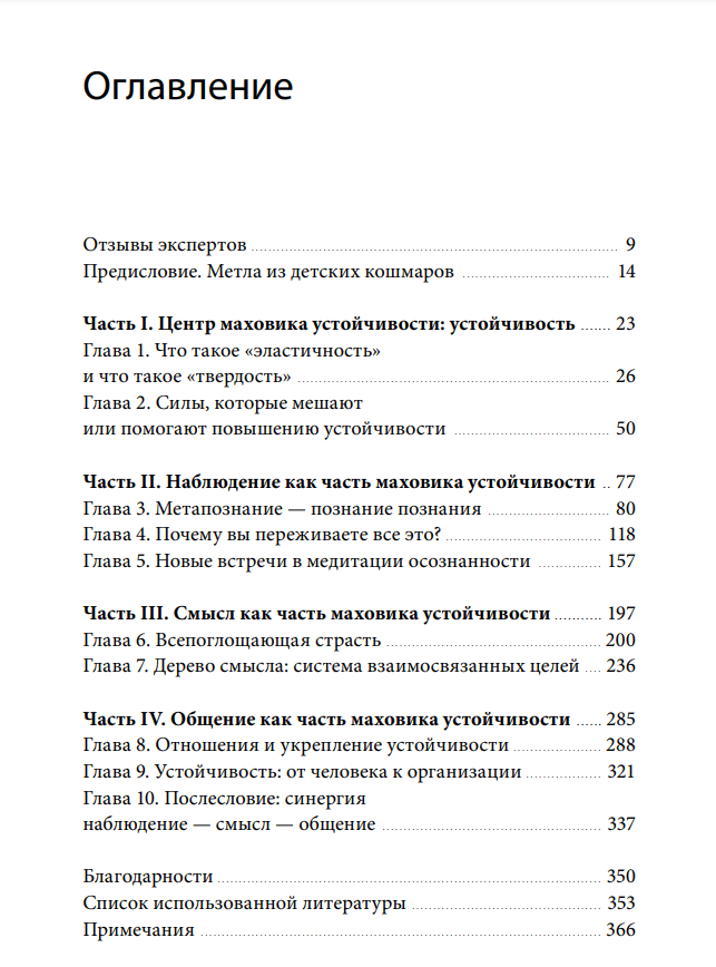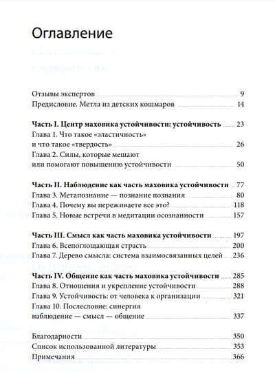 Кроме того, в этой книге разобран ряд моделей мышления и инструментов визуализации для повышения жизнестойкости: таблица обезвреживания тревожных зарядов, медитация осознанности, список любви, дерево значений, список благодарности и т.д. Уделяется особое внимание эмоциональному контролю, изменению мышления, когнитивному улучшению, организационное управление и другие аспекты.