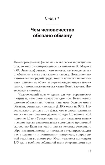 Эта книга — одна из попыток сделать все возможное, чтобы лжи и обмана в нашей жизни стало меньше, а значит, кто-то стал счастливее. Перед вами практическое пособие по безынструментальной детекции лжи. В нем приведены не только советы, но и задания для самостоятельной отработки навыков. Когда уважаемый читатель выполнит хотя бы часть предложенных заданий и упражнений, ложь станет для него достаточно очевидной. Несмотря на то, что текст изложен очень доступно, в его основу положены многотысячные исследования, реальные полевые эксперименты и выборка, которой может позавидовать любой социальный психолог или психотерапевт, а главное — она абсолютно научна.