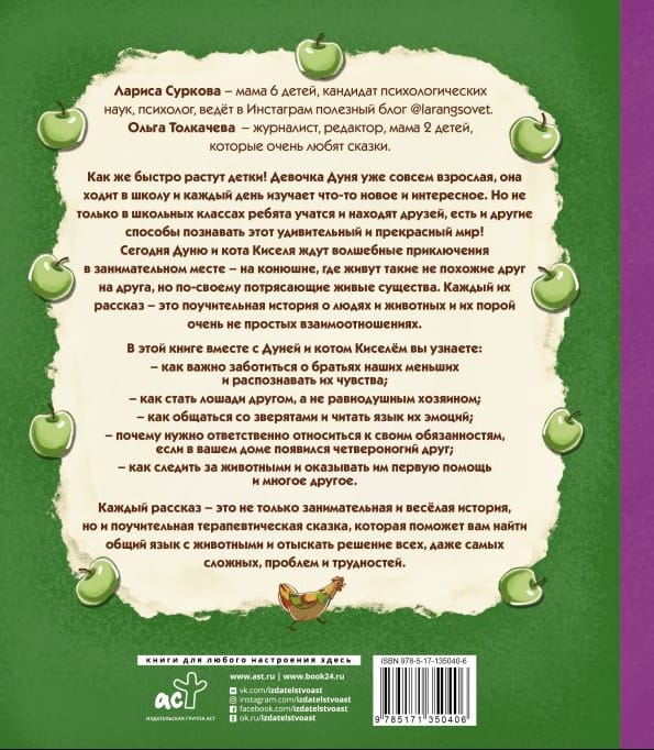 Каждый рассказ — это не только занимательная и весёлая история, но и поучительная терапевтическая сказка, которая поможет вам найти общий язык с животными и отыскать решение всех, даже самых сложных, проблем и трудностей.