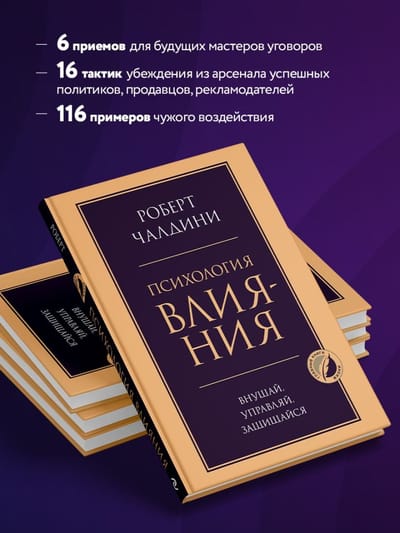 Р. Чалдини много лет изучал принципы успешных продаж. На основе своих исследований он написал руководство по мотивации, ставшее мировым бестселлером и настольной книгой амбициозных политиков, менеджеров, рекламодателей и всех желающих убеждать и добиваться своего.