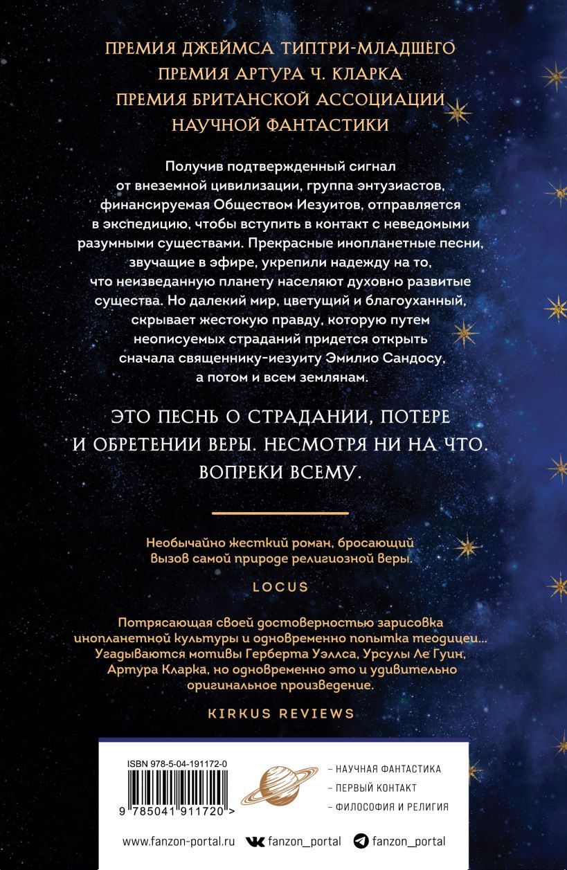 На плечи Эмилио Сандоса, харизматичного священника-иезуита и лингвиста, ложится ответственная миссия, порученная Обществом Иисуса — установить первый контакт с разумной внеземной цивилизацией. Вместе с астрономом, инженером, врачом, специалистом по компьютерам и тремя другими миссионерами он отправляется на планету Ракхат, но экспедиция, которая была призвана доказать существование Бога во вселенной, заканчивается ужасной катастрофой.