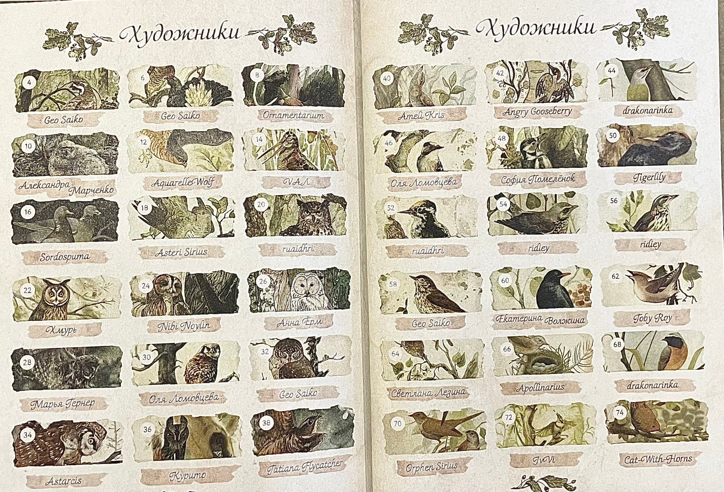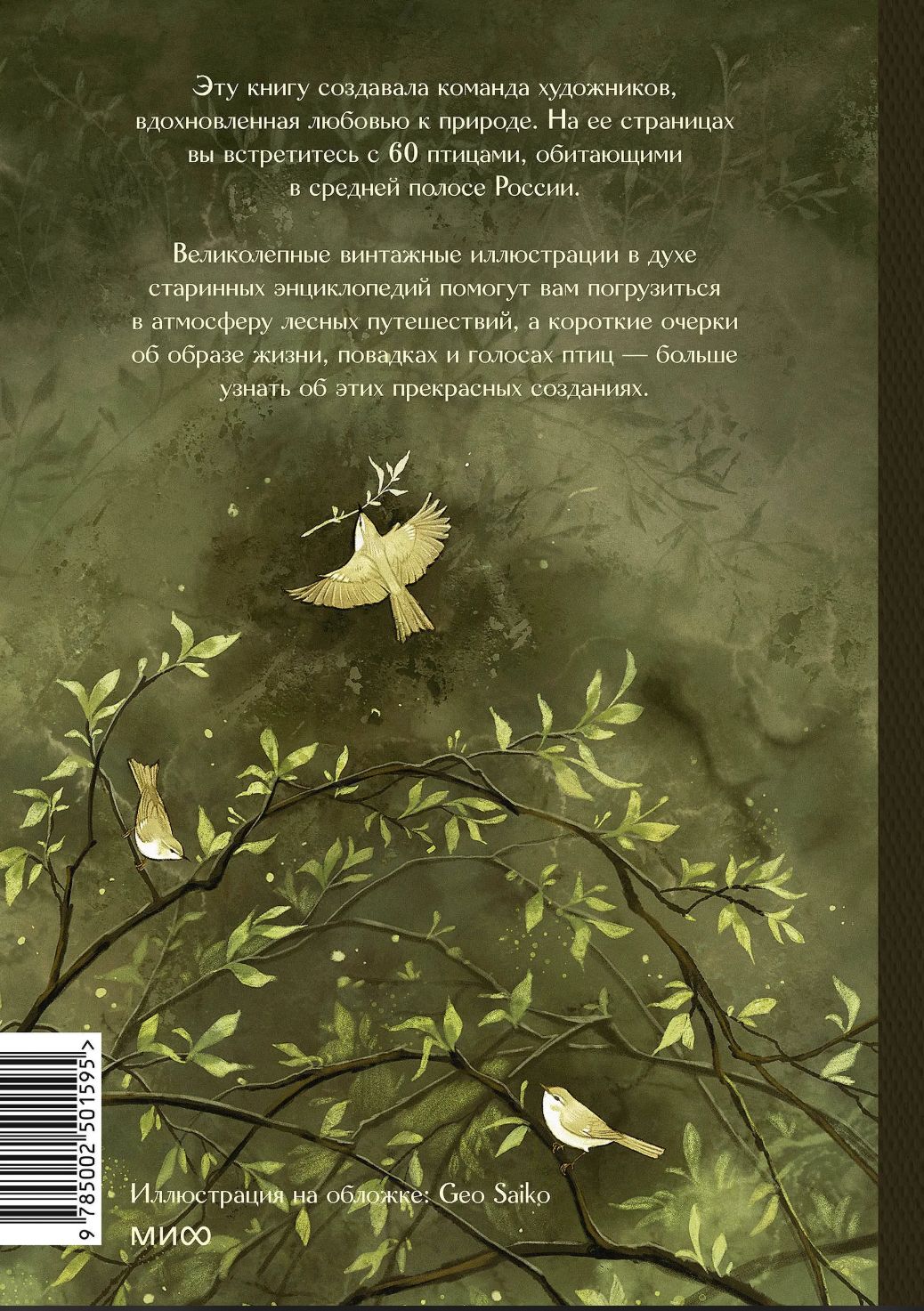 Эту книгу создавала команда художников, вдохновленная любовью к природе. На ее страницах вы встретитесь с 60 птицами, обитающими в средней полосе России. Великолепные винтажные иллюстрации в духе старинных энциклопедий помогут вам погрузиться в атмосферу лесных путешествий, а короткие очерки об образе жизни, повадках и голосе каждой птицы — больше узнать об этих прекрасных созданиях.