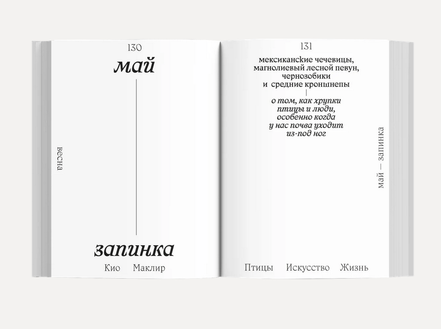 В книге «Птицы, искусство, жизнь: год наблюдений» Кио Маклир отправляется в орнитологическое путешествие по большому городу и на своем пути размышляет о природе творчества и поисках осмысленной жизни.
