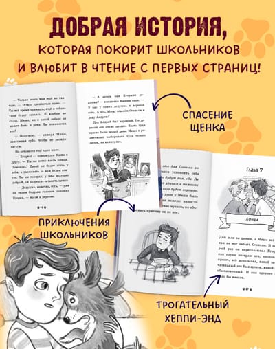 Трогательная книга про дружбу мальчика и щенка, приключения, идеально подходящие для первого самостоятельного чтения.